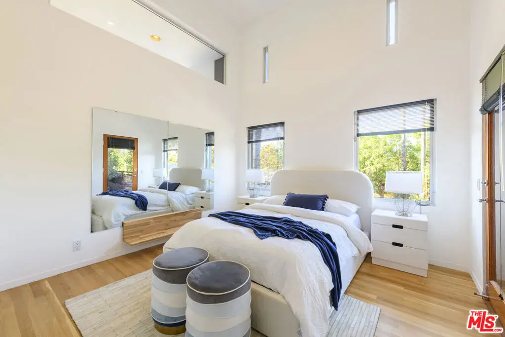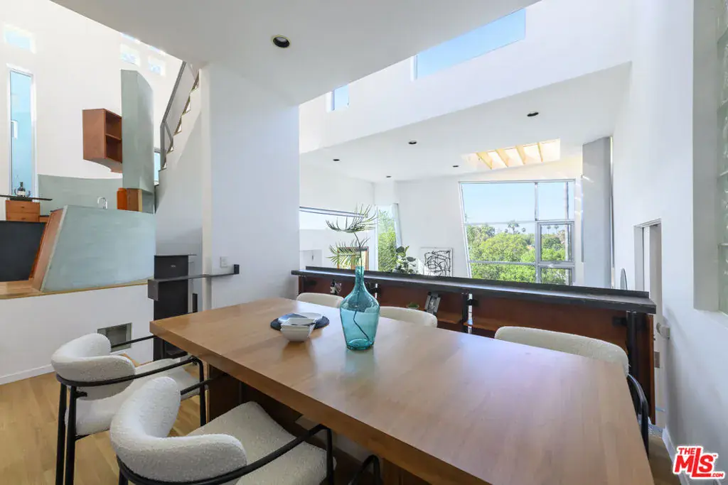 Contemporary Architecture in PRIME STUDIO CITY. South of the Blvd – Carpenter School District! Designed by the renowned architect Jeff Tohl, this 4 bed/3 bath, modern sky house is a true, recently-updated architectural gem. 25-foot ceilings and panoramic high-rise windows open to breathtaking mountain and skyline views. Over 100 windows and skylights allow natural light to pour throughout the house. Beautiful hardwood floors, multiple French Doors, and an ELEVATOR. The primary suite is jeweled with a fireplace, a private patio with an elevated creative space, and an updated marble bathroom with a huge soaking tub. The kitchen has brand new Monogram Appliances, a center island, and a separate wine bar. Other multiple bonus rooms can serve as a 5th/6th bedroom, gym, playroom, or office. Exterior spaces include three (3) balconies, two lush backyard gardens, and an outdoor patio yard. Hillside garden with Corten-steel and redwood terracing, fruit trees (lemon, peach, fig, pomegranate), many other fragrant landscaping & an outdoor dining and grassy area with panoramic views. This is an entertainer’s showplace & delight! Additional features include a multi-zone HVAC system, a 2-car garage with an EV outlet, and 400 amp surge protection. Steps from Ventura Blvd, shopping, cafes, and the highly-sought Carpenter School. Don’t miss the opportunity to own this exquisite architectural masterpiece South of Ventura Blvd!