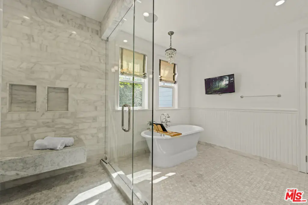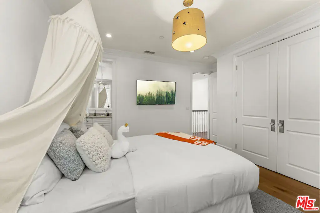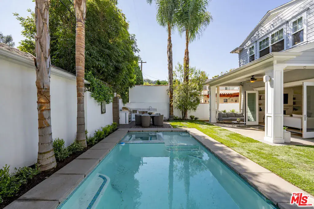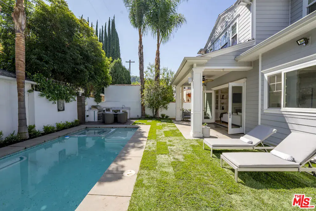 Nestled on a picturesque tree-lined street south of Ventura Blvd, this stunning home resides in the highly coveted “Silver Triangle” of Studio City. As you step inside, the beautiful wide plank bleached oak wood floors draw you into the open concept floor plan. This exquisite residence boasts five spacious bedrooms, six designer bathrooms, and high-ceilinged living areas adorned with custom cordless window treatments by Smith and Noble. Discerning buyers will appreciate the elegant stylistic touches, uncompromising craftsmanship, top-of-the-line finishes, and remarkable attention to detail. Noteworthy features include hand-built cabinetry, custom woodwork, wainscoting, crown moldings, designer tile work, a custom wine cellar, and vaulted wood ceilings.Each bedroom offers its own en suite bathroom, with closets featuring custom Elfa shelving systems. The main suite is a sanctuary, complete with a walk-in closet, fireplace encased by custom built-in shelves, vaulted ceilings, surround sound, stunning views of the hills of Studio City, and a luxurious oversized spa-style bathroom equipped with a TV, toilet room, and stand-alone tub.Designed with a professional chef in mind, the gourmet kitchen is outfitted with Carrera marble countertops, a modern farmhouse sink, and stainless steel appliances, including a 72″ wide SUB-ZERO refrigerator and freezer, six-burner WOLF range top with griddle, WOLF double oven, WOLF warmer, and WOLF microwave. The expansive kitchen island features a single slab of marble, an additional prep sink, an integrated water filtration system for pure drinking water, extra storage space, and a breakfast bar with ample legroom. The adjacent butler’s pantry and additional walk-in pantry with multiple shelves cater to the needs of the most demanding entertainers.Embracing the indoor/outdoor Southern California lifestyle, a bi-fold glass wall seamlessly connects the family room to a landscaped backyard, complete with a dining area, spa, pool, and outdoor kitchen with marble countertops and a built-in BBQ.The dual car garage is equipped with storage closets and high ceilings, providing ample space for all your needs.Available for short term and long term lease. Furnished or unfurnished options available. Pricing may vary for short- term length and furnished options. Please contact for more information.Tenant is responsible for all utilities, the house can be provided furnished or unfurnished