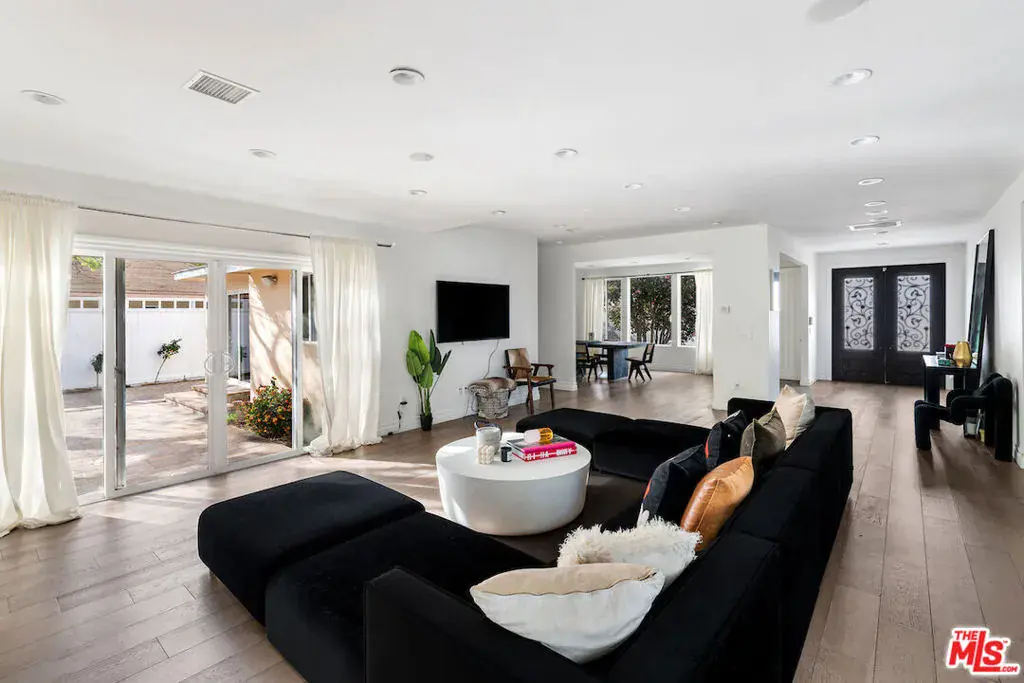 Tucked behind gates on one of Studio City’s most charming tree-lined streets, this modern oasis offers privacy, scale, and style in equal measure. Set on over 10,000 square feet of lush grounds, the home delivers a quiet escape just blocks from Erewhon, Equinox, and the area’s hottest new restaurants, coffee shops, and studios.Inside, soaring ceilings and oversized windows flood the space with natural light. The open-concept layout is effortless yet refined, anchored by a stunning chef’s kitchen with Italian-inspired design, stainless appliances, and a waterfall-edge island with bar seatingideal for everything from casual breakfasts to cocktail hour.The primary suite is a true sanctuary. Think spa-like bath with a soaking tub and glass-enclosed rain shower, a cedar walk-in closet, and sliding doors that open wide to your private backyard. Outside, a sparkling pool and spa are surrounded by mature landscaping, with room to lounge, dine, entertain, or shoot hoops under the stars.Two additional en-suite bedrooms offer comfort and privacy for guests or family, each with beautifully appointed bathrooms. Smart home features include security cameras, built-in audio, and an intercom system. A 2-car garage and expansive motor court provide parking for up to eight vehicles.This is California living at its best – stylish, secure, and just moments from everything Studio City has to offer.