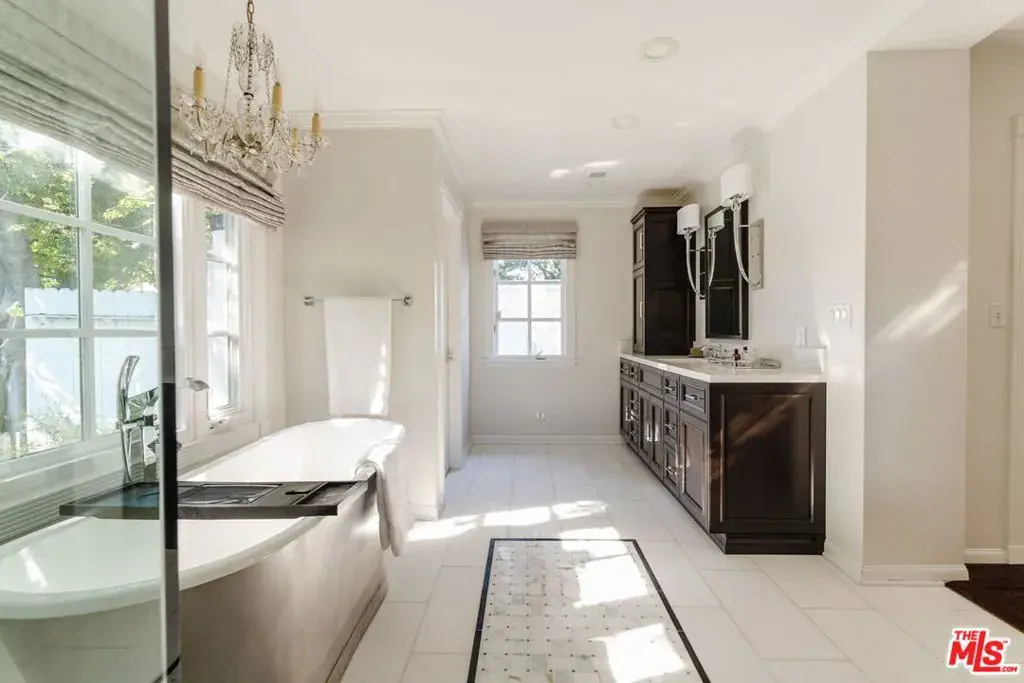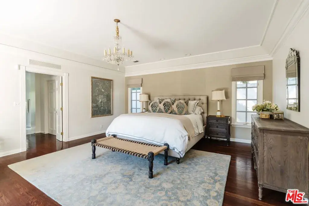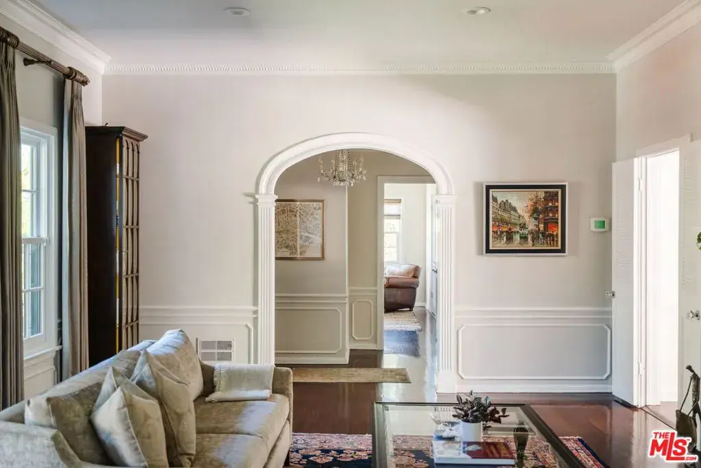 This beautiful single-story east coast traditional blends timeless architecture with modern sophistication. Located in the sought-after neighborhood of Beeman Park on a sprawling 11,421 sq.ft. lot, the home radiates classic charm and enduring elegance. Inside, refined woodworking and impeccable architectural details abound, including dental crown molding, fluted columns, wainscoting, and graceful archways. Lustrous solid hardwood floors flow throughout, enhancing the home’s warmth and sophistication. The gracious formal living room features high ceilings, serene garden views, and a classic wood-burning fireplace. The elegant formal dining room is ideal for hosting memorable gatherings, while the adjoining breakfast room offers a bright and cheerful setting for casual dining. The completely remodeled kitchen combines state-of-the-art design with beautiful tile work and premium finishes, creating a space that’s both functional and inspiring. The oversized family room opens through sliding French doors to the crown jewel of the home, a spectacular covered porch with ceiling heaters, fans, twinkling cafe lights, and an outdoor built-in barbecue. Perfect for entertaining, this inviting space overlooks the newly renovated pool and spa and a lush, low-maintenance lawn. The home features four bedrooms, with the fourth currently serving as a custom office or children’s playroom, complete with built-in cabinetry and desks. Two secondary bedrooms boast generous walk-in closets and share a beautifully remodeled bath with elegant tile and a soaking tub. The primary suite offers a peaceful retreat with dual walk-in closets, a romantic chandelier, and a stunning spa-inspired bath featuring a Signature Hardware tub and Rohl fixtures. Sliding French doors open directly to the back patio and lawn, creating a seamless indoor-outdoor connection that invites relaxation, morning coffee al fresco, or quiet evenings beneath the trees. A separate detached gym, tucked beside the pool, is ideal for morning or evening workouts followed by a refreshing swim. The detached oversized two-car garage offers ample parking and storage. Located in the heart of Studio City, this remarkable home offers easy access to the area’s best shops, restaurants, parks, and schools blending elegance, comfort, and classic California indoor-outdoor living in one of the Valley’s most desirable neighborhoods.