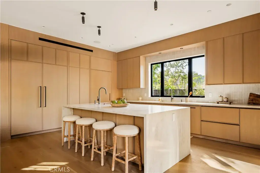 The chef’s kitchen is built to perform and impress—featuring custom cabinetry, premium appliances, a statement island, and seamless flow into the family room and dining area. Large sliding doors open to a true indoor-outdoor experience, ideal for entertaining at any level.