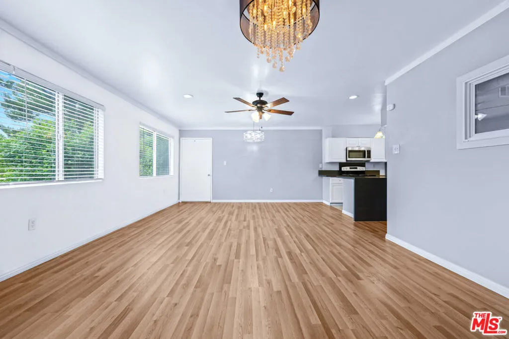 Welcome to this beautifully updated top-floor 2-bedroom, 1-bath condo in the heart of Studio City, offering privacy, natural light, and peaceful treetop views with a private balcony perfect for morning coffee or evening unwinding. The modern kitchen showcases quartz countertops, contemporary cabinetry, and stainless steel appliances, opening seamlessly to a bright living area highlighted by recessed lighting and a statement chandelier. New vinyl plank flooring throughout adds a clean, stylish look while helping minimize noise, and the upgraded bathroom features a new bathtub, ceramic tile, stylish vanity, and updated fixtures. The spacious primary bedroom includes recessed lighting, a ceiling fan, and a walk-in closet, while the second bedroom offers flexible use for guests, a home office, or creative space. Additional upgrades such as a newer HVAC system and added hallway storage enhance everyday comfort and functionality. Community amenities include a heated pool, sauna, secure access, two assigned parking spaces, and laundry on every floor, all just moments from Ventura Boulevard, The Shops at Sportsmen’s Lodge, Fryman Canyon, and easy Westside access, making this move-in-ready condo a standout lease opportunity in a prime location.
