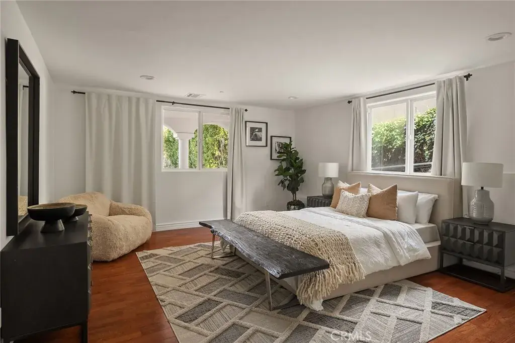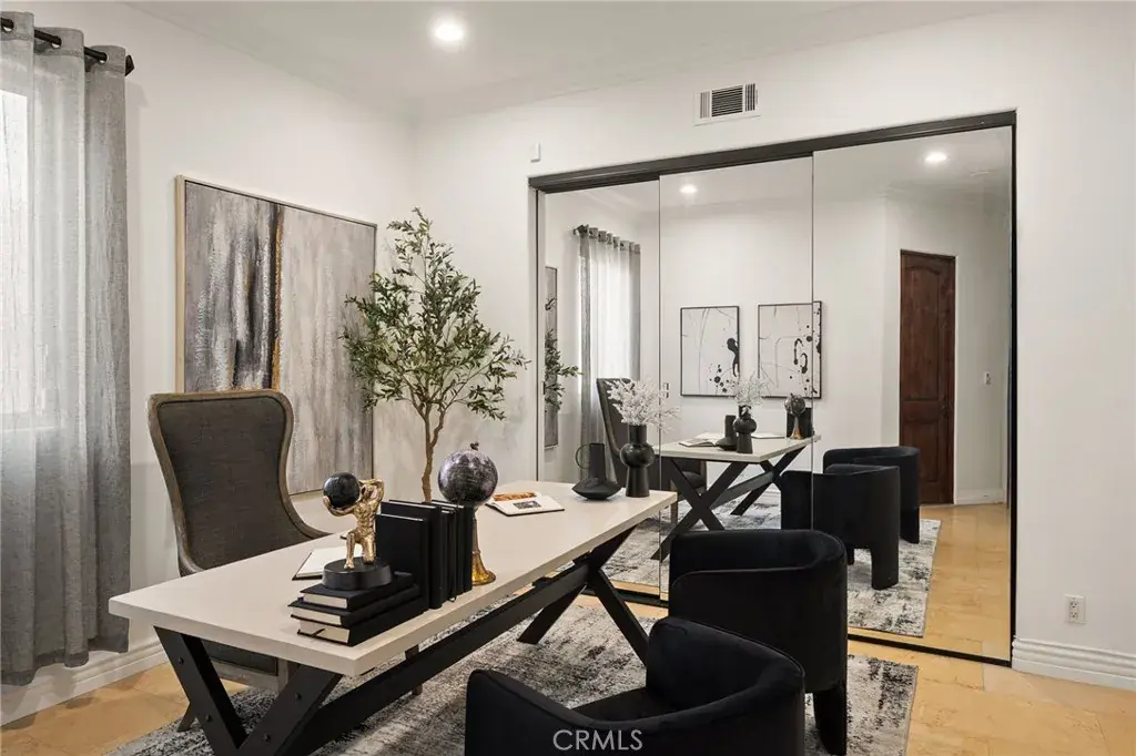 This contemporary Tuscan villa blends timeless elegance with custom craftsmanship, set south of the Boulevard in the heart of Studio City. A grand entry opens to a dramatic living room with soaring 30-foot ceilings, setting the tone for a home designed for both everyday comfort and upscale entertaining. The open layout flows seamlessly into a chef’s kitchen with Viking appliances and a generous center island, connecting effortlessly to the formal dining room. The expansive family room opens to a large balcony with serene mountain views overlooking the resort-style pool and spa, ideal for indoor-outdoor living. A sweeping staircase leads to the luxurious primary suite, featuring a spa-inspired bath with steam shower and soaking tub, along with an impressive walk-in closet. Two additional upstairs bedroom suites each offer their own private bath, providing comfort and privacy. The property also includes separate guest quarters or a private office with its own entrance, complete with a living room, full kitchen, bedroom, bath, laundry room, and patio overlooking the pool. All just moments from the shops and dining along Ventura Boulevard, including Sportsmen’s Lodge, this exceptional home delivers luxury, versatility, and a prime Studio City location.