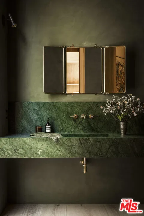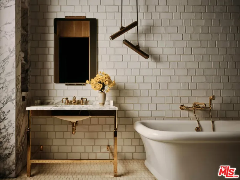 Tucked away within one of Los Angeles’ most exclusive, celebrity-studded enclaves of Fryman Canyon, sits a private estate that redefines California living. Designed by AD-published visionary design firm, Studio Rob Diaz. Envisioned in the spirit of the Swedish countryside and inspired by its natural setting, lies a sculptural composition of striking A-frame volumes, cladded harmoniously in wire-brushed cedar. Monumental and inviting, the architecture harmonizes seamlessly with its serene surroundings, where century old redwoods and natural rolling hillsides create a back canvas that only this 1.4 acre estate can offer. Perfectly symmetrical in form, expansive living spaces are defined by soaring 30 foot ceilings in which custom Belgian oak floors, hand finished wall paneling, titanium travertine, copper accents and bespoke lighting, layer this home with warmth and refinement. Thoughtfully compartmentalized, the home balances intimacy with scale, offering seven bedroom suites and eleven baths across multiple forms, each designed with intention and cohesiveness. At the heart of the property is a resort-like pool, grounded by sweeping meadows and limestone decking. Flanking the rear of property are two bespoke Limestone pavilions: one dedicated to wellness with a spa, cold plunge, grand sauna and massage suite; the other a state-of-the-art fitness studio. Nestled between the pavilions, an outdoor kitchen and dining area create the ideal setting for effortless entertaining, while expansive upper decks frame breathtaking vistas of the organic landscape. From its striking architectural pedigree and bespoke materiality, to its unparalleled privacy and connection to nature, the Fryman Estate is a bold statement of design, restraint, lifestyle and legacy; crafted for those who demand the extraordinary.