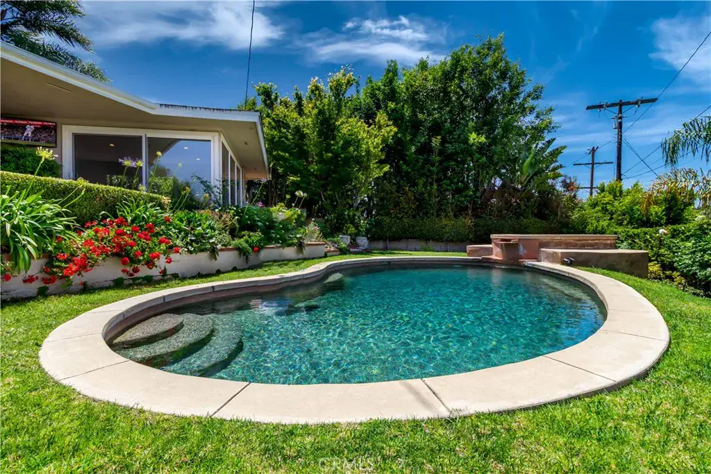 Gated private property in the Mulholland corridor. Jetliner views, swimming pool, basketball court, top-of-the-line property. Perfect for single celebrity. Walls of glass allow for an abundance of natural light throughout this open floor plan. A completely open and airy kitchen that looks out to canyon & mountains, that provide a tranquil setting. The master is a mini suite, with incredible city views, and a walk in closet. Master bath features an exposed glass window that lets in lots of natural light, a sunken tub and a separate shower. The second bathroom also takes in natural light and opens to Incredible city lights. This home is perfect for entertaining. Step out to paradise, the brick patio leads you to a heart shaped pool and spa tub, and of course the most incredible sweeping views of the valley.