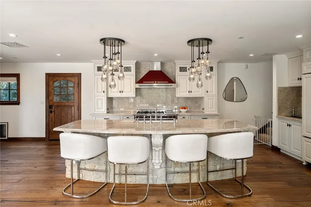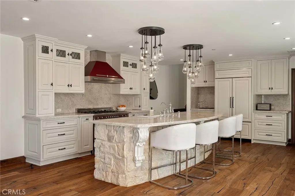 Perched on a hilltop above Studio City at the end of a private road with double gates, this one-of-a-kind estate offers nearly two acres of unparalleled privacy with sweeping panoramic views in every direction. A long, winding cobblestone driveway leads to a grand chateau-style residence that artfully blends timeless architecture with modern amenities. A dramatic double-door entry opens to an interior rich in character, featuring bespoke French wood floors, custom artisan cabinetry, wood-beamed ceilings and thoughtfully designed living spaces. The chef’s kitchen is a masterpiece, complete with a stone-clad center island, top-of-the-line appliances, a walk-in pantry, elegant designer finishes and a sun-drenched sitting area. Designed for both everyday living and grand entertaining, the kitchen flows seamlessly into a spacious formal dining room, while a warm and inviting living room is highlighted by an elegant fireplace and sliding glass doors that open to showcase commanding views of the Valley. Four generously sized bedrooms are thoughtfully spread throughout the home, including an expansive primary suite with a lavish ensuite bath and hidden room. Outdoors, the estate unveils a resort-like sanctuary, featuring a sparkling pool, multiple entertaining areas and expansive grassy lawns surrounded by lush, park-like grounds, all set against a backdrop of breathtaking vistas. Additional highlights include a laundry room, two-car garage and direct access to Fryman Canyon’s hiking trail. This prime South of the Boulevard location is within the top-rated Dixie Canyon School District and offers easy access to the Valley and Westside, prestigious private schools like Harvard-Westlake and Campbell Hall, and exceptional shopping and dining found along Ventura Boulevard.