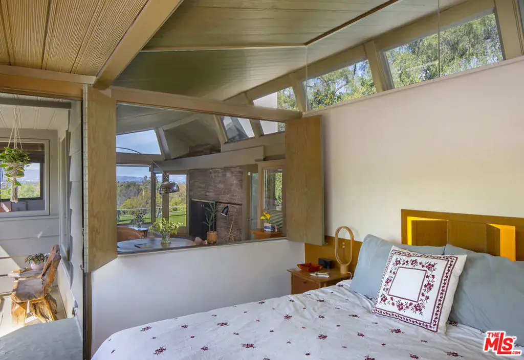The Roxy Roth House, 1946. R.M. Schindler, Architect. Commissioned by a screenwriter and actor, the Roxy Roth House has been cared for by only four owners across nearly eight decades, all creatives themselves. Critic Reyner Banham observed that Schindler “designed as if there had never been houses before,” a sentiment fully realized here in the inventive choreography of light, space, and privacy. Living here feels less like inhabiting a traditional house and more like inhabiting a work of art. Sited above the street at the end of a cul-de-sac, the residence offers both seclusion and sweeping, cinematic views across the San Fernando Valley. An understated entry leads to a generous first-floor bedroom before ascending into the main living level, where light pours in from three directions by day, and creative interior lighting brings sculptural warmth by night. Space unfolds gently, with shifting planes of light dissolving the boundary between indoors and out. The main floor’s living and dining area centers on a massive picture window framing the valley panorama. The room is flanked by Schindler’s original built-ins, functional alcoves and hidden storage. The primary suite includes more whimsical touches – a built-in reading light and a folding screen that when opened allows a window into the living room and beyond to the unique valley view. Throughout, Schindler’s custom details remain intact, anchoring the home firmly in its architectural lineage. Another defining feature is the approximately 400 sq. ft. writers’ studio/office, once the carport and later transformed by architect Barbara Bestor. Lined with a series of dramatic clerestory windows, the space is an inspiring environment for writing, art, or remote work. Outside, native landscaping surrounds the property, while a hillside fire pit and seating area above the house provide sunset views over the valley. Despite its tranquil setting, the location remains convenient, with Carpenter Elementary and Ventura Boulevard just a short walk away. Features: 3 bedrooms; 3 en-suite bathrooms; fireplace; original Schindler built-ins; expansive yard; panoramic views; separate 400 sq. ft. studio/office.