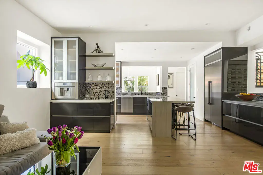 Situated in the heart of Studio City, this newly renovated contemporary smart-home masterfully combines scale, comfort, and privacy. In nearly 4,000 square feet, the home is equipped with four generously sized bedrooms with high ceilings and five well-appointed bathrooms. Skylights and oversized windows fill the spaces with natural light and frame sweeping canyon views. The gourmet chef’s kitchen is adorned with Thermador smart appliances, Geoluxe countertops, an oversized island, custom cabinetry, a modern backsplash, and ample storage. It anchors the expansive living and dining spaces, ideal for both everyday living and effortless entertaining. The primary suite is a quiet retreat, with its soaring ceilings, large windows, access to a private balcony and en-suite custom bathroom with bespoke tilework, a soaking tub, and a large walk-in closet. Whether hosting gatherings, relaxing outdoors, or dining al fresco under the stars, the setting makes for an unrivaled outdoor retreat. Nearly all of the bedrooms have direct access outside. Other features include a two-car garage, a glass wine cellar, and multiple outdoor balconies. Only a few moments from the studios, West Hollywood, Beverly Hills, and Ventura Boulevard’s lively cafes and restaurants, this home combines serene hillside living with unmatched convenience.