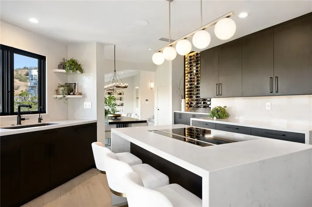 A one of a kind, warm and inviting custom Studio City hillside retreat offering the nearly impossible to find ‘Golden Trio’ in the hills: pool, views, and a usable yard. A heated pool and spa overlook sweeping canyon and city views, while the expansive grassy yard features multiple outdoor lounge and entertainment areas, a true rarity for a hillside property and an ideal setting for relaxing or entertaining. Fully remodeled down to the studs, no detail has been overlooked. The home features fully custom design details throughout and is offered fully furnished with thoughtfully selected designer pieces, creating a truly turnkey, effortless, move-in-ready lease. Inside, the home features European wood floors, designer lighting, Miele appliances, and a clean, modern aesthetic throughout. The main level offers an open layout with the kitchen, living, and dining areas flowing seamlessly together. The primary suite is a true retreat featuring a fireplace, custom built-ins, a custom oversized Tempur-Pedic adjustable bed with luxury linens, and a spa-like bath with steam shower. Two additional ensuite bedrooms offer a comfortable and private layout. Standout spaces include a fully equipped recording, streaming, or gaming studio hidden behind a secret door on the main level. This flexible space could also function as an additional bedroom, with a full bathroom conveniently located on the same level. Additional entertainment and lifestyle features include a private bar, convertible media or theater room, piano, and custom furnishings throughout. The lower level features a media room with bar that opens directly to the pool and outdoor BBQ area and lives like its own private space with a separate entrance, offering incredible flexibility for guests, extended living, or anyone who appreciates additional privacy within the home. Additional highlights include a gym with Tonal, a full smart home system with Control4 and integrated surround sound throughout, and an elevator servicing all three levels for added convenience and accessibility. Located just minutes from Erewhon, Equinox, Ventura Blvd dining and shopping, and close to highly rated schools, this home offers a rare blend of hillside privacy and everyday convenience while delivering a true California lifestyle experience.