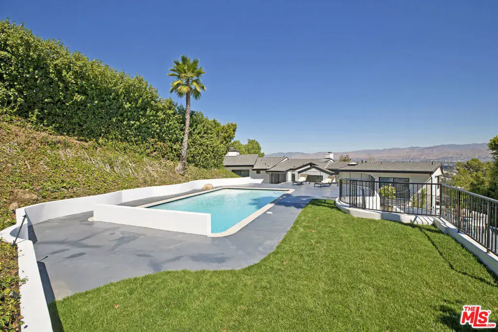 Perched high above the street on a generous elevated lot, this beautifully remodeled Studio City home captures sweeping valley views and sparkling city lights. Perfectly situated just moments from Ventura Boulevard’s fine dining and boutiques, with easy access to the Westside, this residence offers an exceptional blend of privacy, style, and convenience. Completely remodeled in 2018, the home showcases modern finishes and thoughtful design throughout. The resort-style pool is a true swimmer’s pool, enhanced by an advanced AquaLink system that allows you to control the temperature remotely from your phone. The surrounding outdoor spaces are ideal for entertaining, featuring a built-in barbecue, spacious patios, and total privacy amid lush, mature landscaping. Solar panels off are owned. The chef’s kitchen is both functional and elegant, highlighted by a large center island, Thermador stainless-steel appliances, and sleek custom cabinetry. The open living area features a striking European stone fireplace and seamless indoor-outdoor flow to a front deck perfect for morning coffee or evening sunsets. Offering five en-suite bedrooms and five bathrooms, the home includes a lower-level Bedroom suite and bathroom with a private entrance, currently used as an artistic music studio ideal for guests, a home office, or creative workspace. A three-car garage with soaring ceilings provides ample parking and potential RV space, while a dumbwaiter offers direct access to the kitchen level for convenience.The grounds are adorned with pomegranate, citrus, and hibiscus trees, creating a tranquil setting that complements the home’s refined ambiance. Move-in ready and meticulously maintained, this hillside residence embodies the best of Studio City living – luxurious, private, and close to everything.