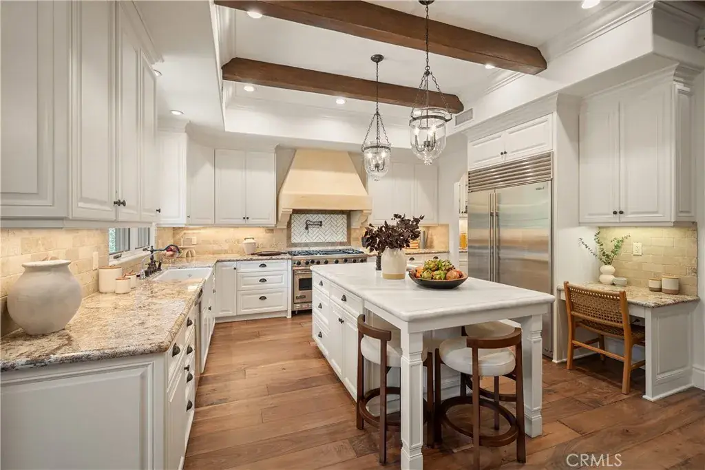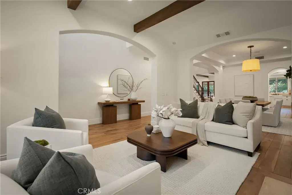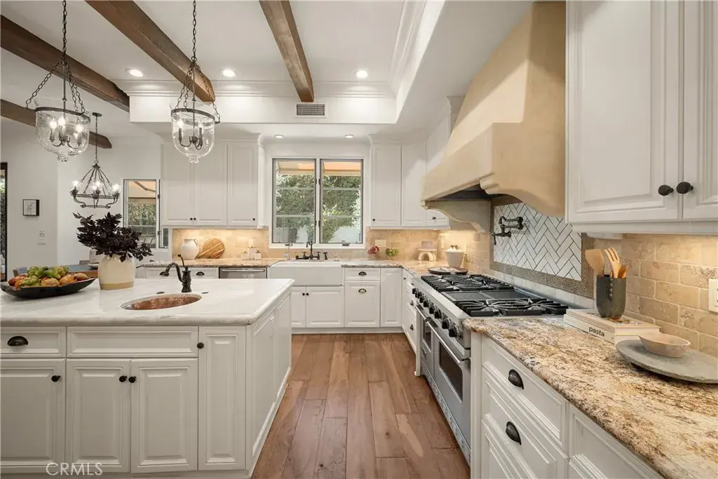 Welcome to this gated, Tuscan-inspired estate, located on a quiet, tree-lined street in the highly sought-after Colfax Meadows neighborhood of Studio City. Step inside to discover an open-concept floor plan that seamlessly blends timeless design with modern amenities. At the heart of the home lies a stunning chef’s kitchen equipped with top-of-the-line appliances, an oversized island, sun-drenched breakfast nook and large walk-in pantry. A convenient butler’s pantry connects to the spacious formal living and dining room, the perfect space for hosting unforgettable gatherings. The inviting family room features two sets of French doors that open to your private entertainers backyard, complete with a fenced-in pool/spa, built-in BBQ with bar seating and lush grassy yard. Upstairs, you’ll find four well-appointed bedrooms, including a luxurious primary suite boasting a custom walk-in closet and spa-inspired ensuite bathroom with a steam shower, jetted soaking tub and double vanity. Additional highlights include a main-level ensuite bedroom, temperature-controlled wine room, dedicated laundry room, a security system and two-car garage. This property is located within the top-rated Carpenter School District and just moments from Tujunga Village, Ventura Blvd, NoHo Arts District, the Studios and so much more.