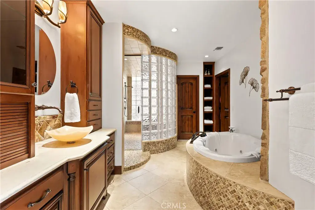 A private haven offering a respite from the outside world in Studio City. The warmth of a mountain lodge with the calm of a spa. Unobstructed, sweeping views merge serenity, sophistication, and artistic elegance. Floor-to-ceiling glass doors open to breathtaking wraparound view decks, inviting indoor-outdoor living with multiple spaces for lounging, dining, and soaking in the panoramic scenery. The heart of the home is an exceptional chef’s kitchen outfitted with Viking Professional appliances, hand-crafted cabinetry, hammered copper sinks, 2 pantries, 2 dishwashers and a unique hand-hewn granite island with roped edge. The lush grounds are highlighted by a tranquil footbridge over a beautiful waterfall with fish below by California Waterscapes. Inside this four bedroom home, rich warmth meets refined elegance with four cozy gas fireplaces, a collector’s wine cellar, and a spa-like primary suite featuring a rock-pebble steam shower and spa bath. This sprawling estate includes modern and energy-efficient features: tankless water heaters and a new main hot water heater for optimal efficiency; ample built-in storage throughout the home; and a newly installed Kevlar-lined sewer system. Additionally, there is a lower-level unfinished space, ideal for conversion into a guest suite or fully independent ADU (Accessory Dwelling Unit), making this a four level residence. This home is situated on a peaceful cul-de-sac (with a two car garage and street parking for guests) for maximum privacy, yet conveniently located just minutes from major studios, the Westside, Harvard-Westlake School, and Ventura Boulevard’s top dining and shopping. This one-of-a-kind estate offers the ultimate blend of tranquility, luxury, and accessibility. A rare and timeless retreat in the heart of Studio City, this is California living at its finest. You’ll never want to leave.