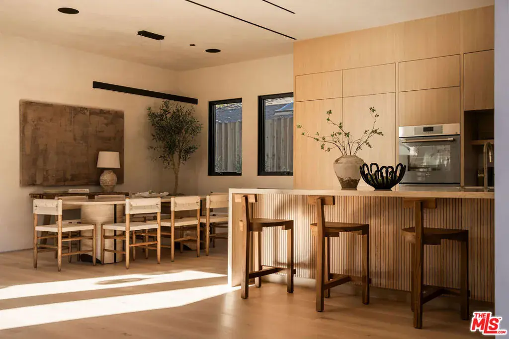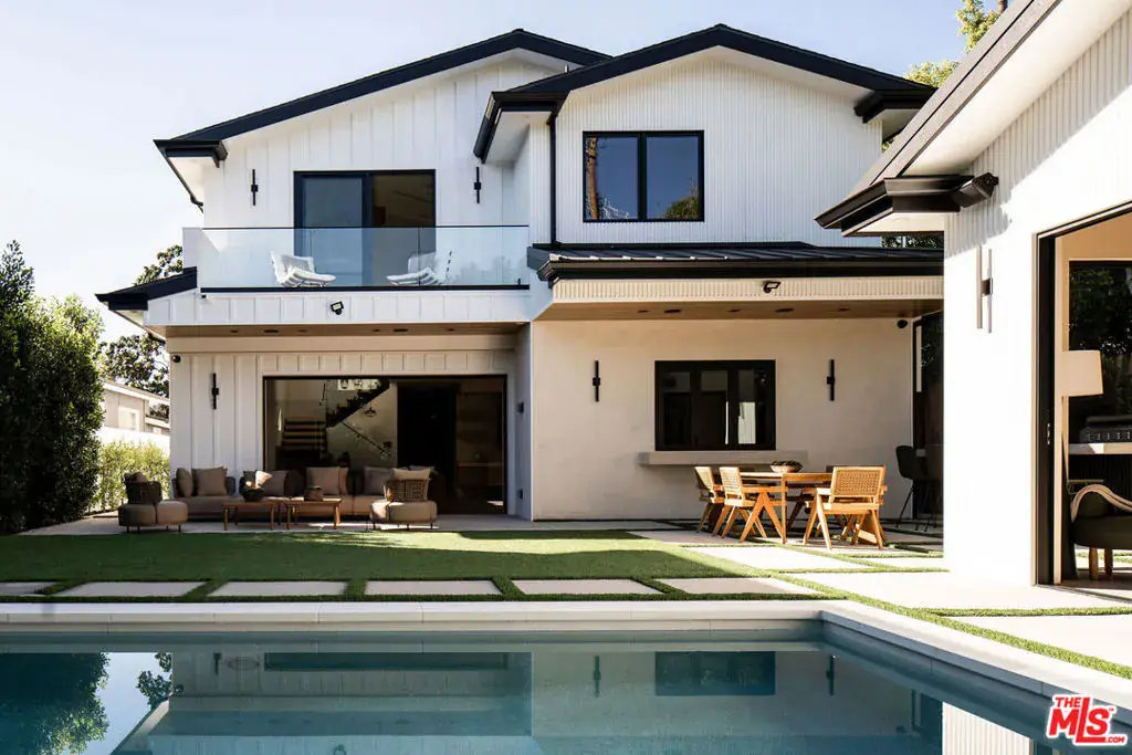 Defined by craftsmanship and intention, this new construction gated residence on Kraft Avenue presents a refined take on contemporary luxury in the heart of the Colfax Meadows. Conceived with an emphasis on proportion and materiality, this five bedroom, six bathroom home features high ceilings, natural materials, white oak floors, and custom details throughout. The composed open layout connects formal living and dining spaces to a chef’s kitchen anchored by an oversize travertine island, a full suite of Thermador appliances, custom range hood, pot filler, and a service window bar for effortless entertaining. In the living room, a floor to ceiling travertine fireplace serves as a striking architectural focal point while also creating a cozy ambiance. Expansive glass pocket doors tuck away and open to a private backyard with a resort style pool and spa, built in barbecue, covered patio, and a curated outdoor space. One ensuite bedroom is thoughtfully placed on the main level, while the second level is anchored by a serene primary suite with a private balcony, spa inspired bath, and custom walk in closet, complemented by three additional bedrooms. A detached guest house featuring a sitting area, wet bar and an adjacent bath enhances the backyard experience, offering a refined space for lounging or hosting. Tech-forward features include a Control4 smart system, integrated security, cameras, and multi-zoned HVAC. Located within the Carpenter School District and moments from Ventura Boulevard and major studios, this residence balances discretion, design, and lifestyle.
