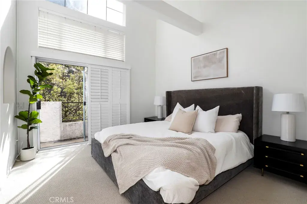 The expansive primary suite feels like a private retreat, highlighted by dramatic vaulted ceilings, generous closet space, and direct access to a private outdoor patio — ideal for morning coffee or relaxing evenings. Above, a versatile loft provides the perfect work-from-home office, creative space, or guest retreat with additional outdoor access.
