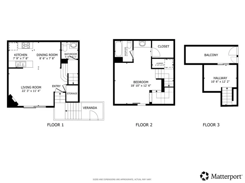 Additional features include in-unit laundry, hardwood flooring throughout the main level, newer carpet in the bedroom, and two secure parking spaces with direct entry to just in front of the unit.