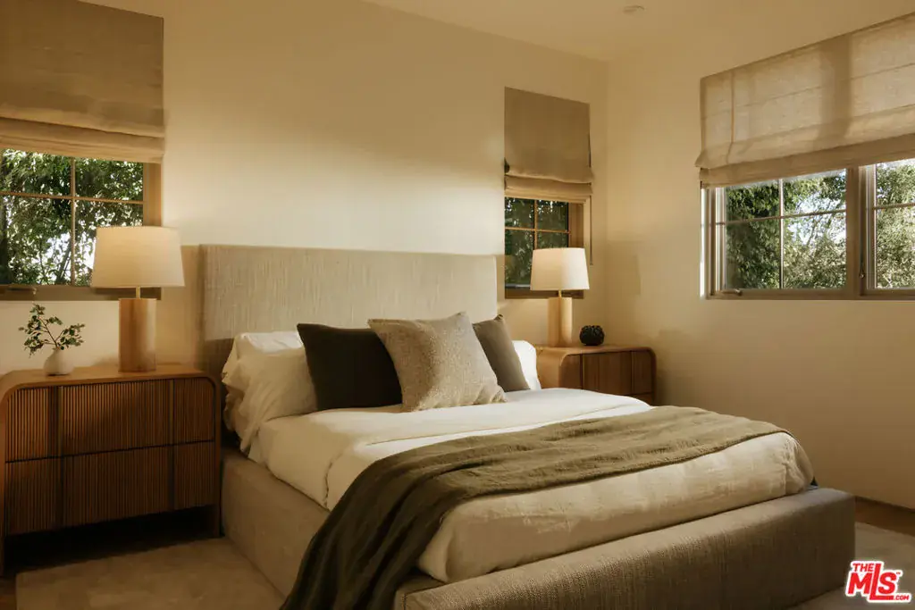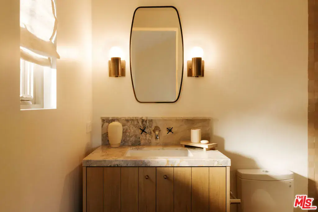 A brand-new modern residence – minimalistic yet richly layered and curated by interior designer Caroline Schoppe with Concept by C. This 5-bed, 5.5-bath home opens with a stately gated entry lined with mature olive trees, guiding you into a serene formal living and dining experience. Oversized sliding doors frame the kitchen and great room, creating a seamless indoor-outdoor connection to the pool, BBQ, and landscaped grounds. The kitchen is designed for true entertainers, complete with a butler’s pantry, walk-in pantry, and full Miele suite. A spacious detached ADU offers versatility – currently imagined as an entertainment lounge with ping-pong, bar, and seating, yet equally functional as a creative studio or private guest suite. Throughout, the home’s palette exemplifies understated luxury: brass detailing, natural stone tiling, chocolate-fusion countertops, v-groove rift-oak cabinetry and doors, cobblestone exterior moments, and an English-inspired pergola wrapped in jasmine, rosemary, and olives. Every finish is thoughtful, warm, and timeless. And for the Melrose Place lovers – this one speaks your language. Located just moments from Studio City’s own equivalent, Ventura Place, you’re a short stroll to the beloved Sunday Farmers Market, dining, and boutique shopping. A rare blend of design, function, and lifestyle.