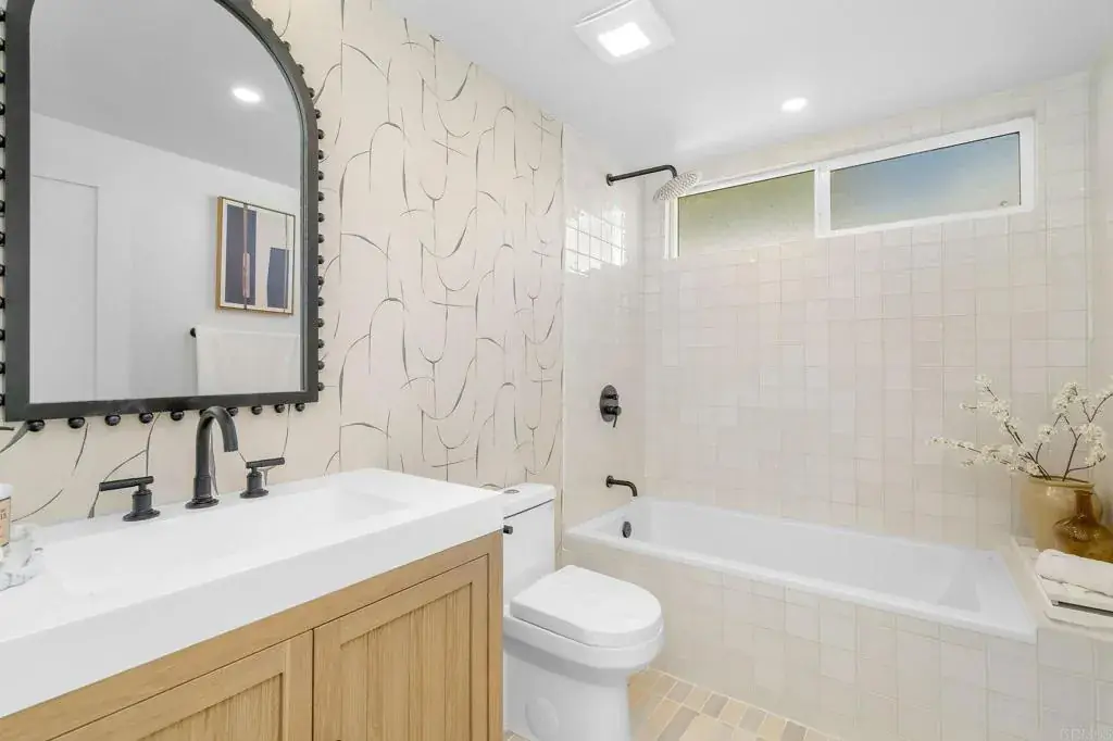 Fully remodeled and impeccably designed, this Studio City residence blends modern style with everyday comfort just moments from Ventura Boulevard and convenient access to the 101. The open-concept layout showcases wide-plank wood floors, recessed lighting, and a showstopping chef’s kitchen with a quartz island, custom cabinetry, elegant hardware, stainless steel appliances, skylight, and picture windows that bring in abundant natural light. The connected living, dining, and family areas create an easy, functional flow, anchored by a white brick fireplace and expansive windows. The primary bedroom features direct backyard access and a spa-inspired bath with dual vanity, custom wood cabinetry, designer tile, and an oversized shower. Additional bedrooms and a beautifully renovated secondary bath provide flexible space for guests, workspace, or creative use. A private brick courtyard with custom pavers and water-wise landscaping adds charm and usability, while a long gated driveway leads to a detached two-car garage with ample parking and storage. Ideally located near popular dining, shopping, parks, and hiking trails, this home offers refined living in a desirable Studio City neighborhood.