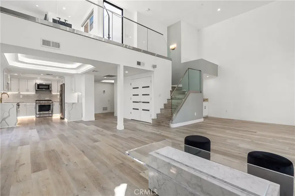 Welcome to your new home right off of Ventura Blvd in beautiful Studio City. As you enter the unit you are immediately taken aback by the open concept living area with high ceilings, hardwood floors throughout, fireplace in the living room, and a conveniently located bar area. This home is a great space to entertain or have your own sanctuary after a long day. The kitchen boasts stone countertops, stainless steel appliances, and under cabinet lighting. Right off the kitchen is the spacious living room abounding with bright, natural light with palm treetops right outside the balcony and second level upscale window near the ceiling. The second bedroom has been converted to a loft making this a great space for guests, or a home office. The luxurious primary bedroom sports a fireplace, walk in closet complete with designer closet system, and a gorgeous on suite primary bathroom. All of this complete with a private outdoor patio giving you the convenience of building living with the bonus of a spacious outdoor space. Did I mention the in unit laundry, and 2 parking spaces? This one is a must see.