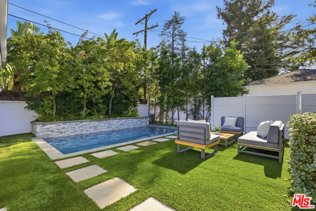 Beautifully renovated Cape Cod retreat in Studio City, showcasing an exceptional open floor plan and high-end upgrades throughout. From the moment you enter, you’re greeted by a light filled living room and dining room featuring a cozy fireplace and expansive picture windows that flood the space with natural light. The chef’s kitchen seamlessly opens to a stunning family room, creating the perfect setting for both everyday living and entertaining. Glass doors lead out to an inviting deck and a lush, private backyard oasis complete with a sparkling pool and tranquil waterfall, ideal for relaxing or hosting gatherings. The luxurious primary suite is a true sanctuary, offering a spacious bedroom, spa inspired bathroom with steam shower, walk in closets, and French doors that open directly to the patio. Two additional en suite bedrooms each feature their own full bathrooms, providing comfort and privacy for family or guests. The two car garage is fully equipped with plumbing, sewer, insulation, and electrical, ready to be transformed into a guest house, pool house, or creative studio. Additional amenities include rich wood flooring, recessed lighting, and security system with alarm and cameras throughout the property. This exceptional home blends timeless charm with modern luxury in one of Studio City’s most desirable neighborhoods.