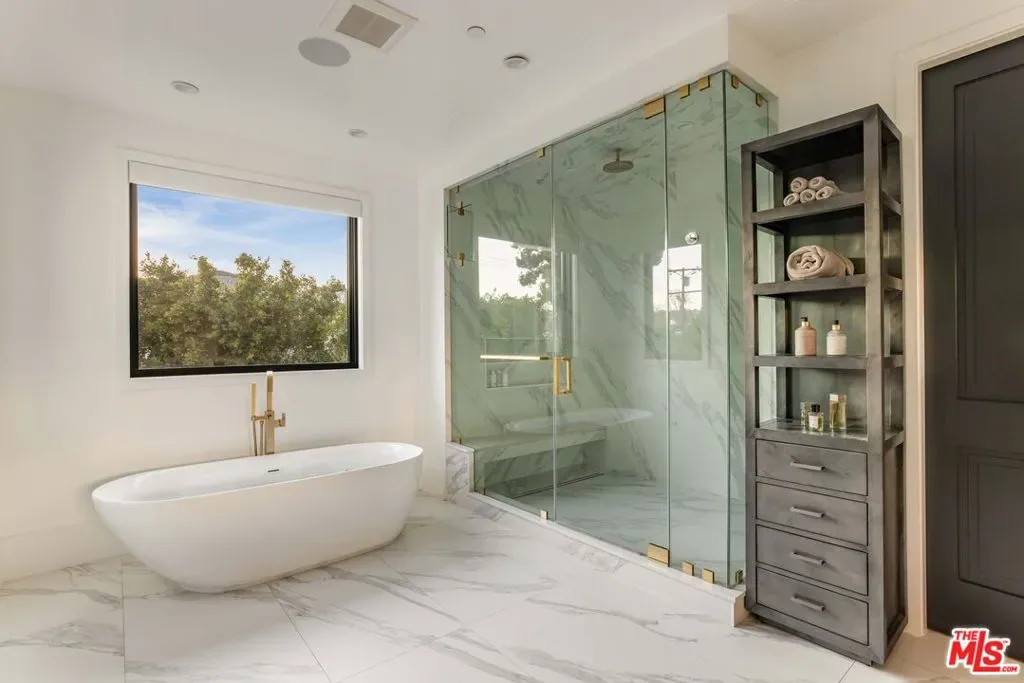 Beautifully gated farmhouse-styled residence centrally located within Studio City. This newly constructed home boasts a spacious, favorable layout with an entryway flanked by both a formal living and dining room, flowing seamlessly to the enviable chef’s kitchen, fully equipped with high-end dual appliances, a large marble waterfall island, custom cabinetry and a banquet-style breakfast nook. The vast family room opens to a private garden, featuring a large pool and spa, fire pit, outdoor patios and a charming cabana with an arbor and full bathroom. The primary suite offers luxury and functionality, with designer finishes, a vaulted ceiling, dual closets, and a lavish en-suite with custom hardware, blonde wood vanities, a standing tub, and an oversized marble-walled shower. The home also includes five additional ensuite bedrooms, two more bathrooms (totaling eight),and a second-floor laundry room.The lower level offers a den, guest room/staff quarters, gym, home theater and temperature-controlled wine room. Further features include Smart Home technology for safety and security, a central vacuum system and close proximity to the area’s most coveted schools & Ventura Boulevard’s best shops and restaurants.