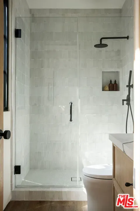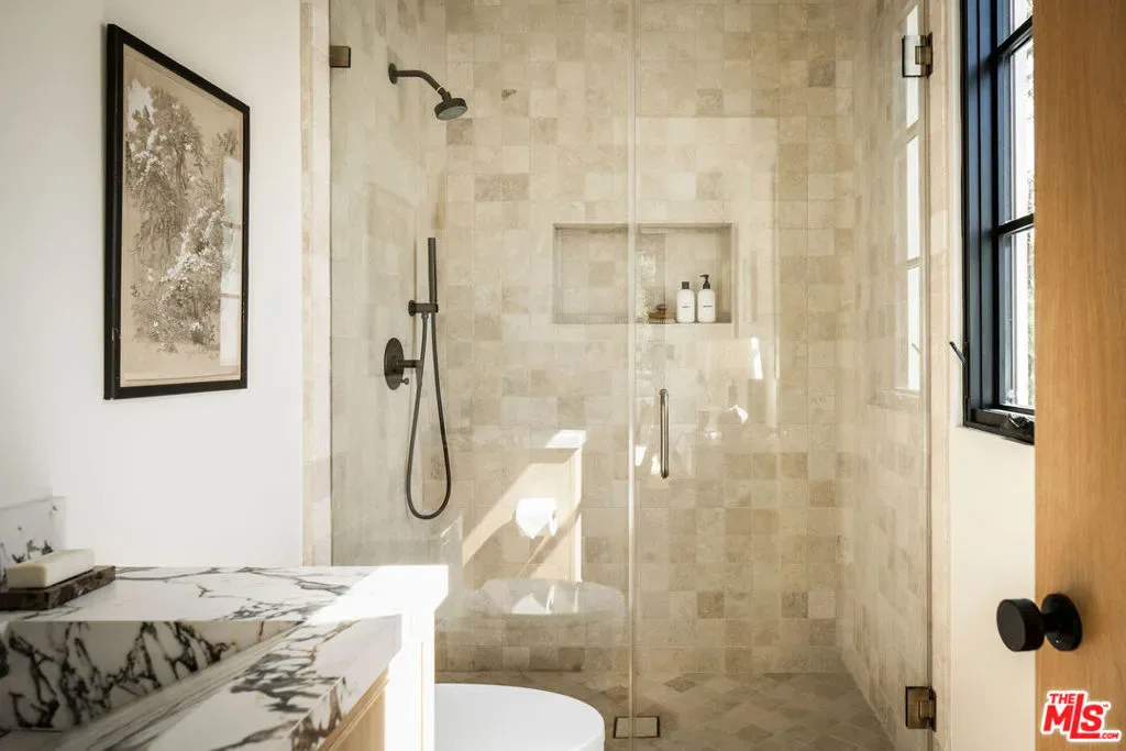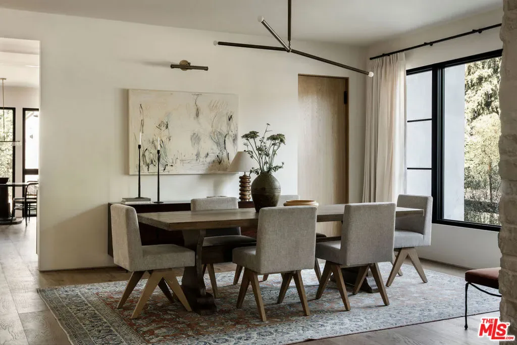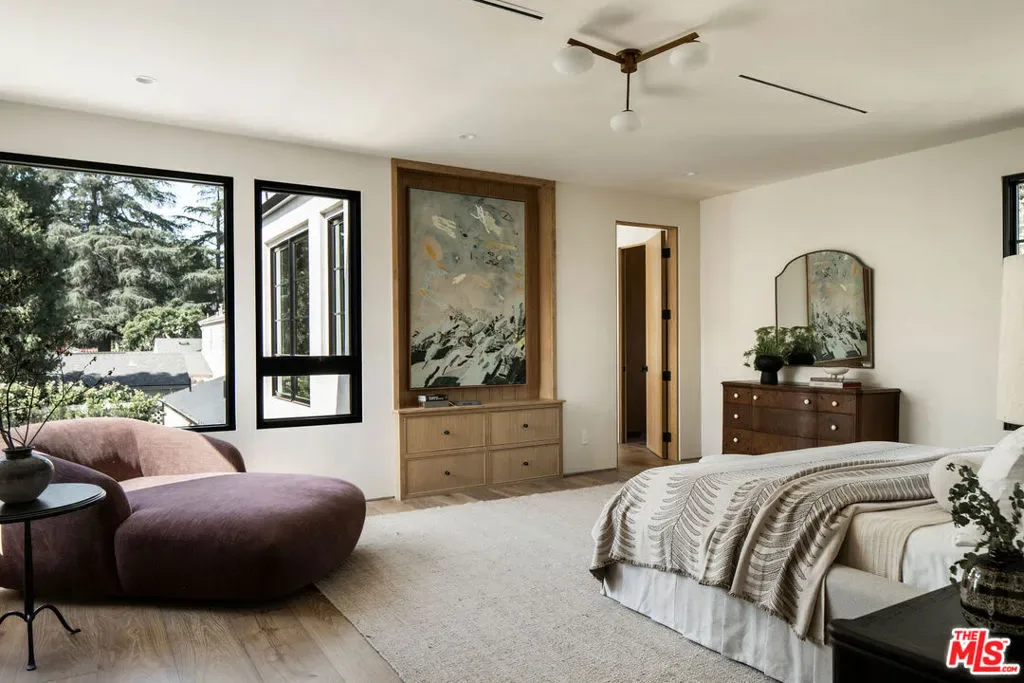 Nestled in the heart of Studio City’s coveted Silver Triangle, this newly constructed modern farmhouse blends natural materials, designer finishes, and luxurious amenities to create a truly refined, light-filled sanctuary. Sitting on an oversized lot, the thoughtfully designed 5bed/5.5bath main house and separate 1bed/1bath guest house balance architecture and lifestyle with quiet ease. Inside, find the open concept main floor rooted in the dramatic grand foyer and sweeping curved staircase with high ceilings, white oak beams, and wide plank wood floors throughout. The chef’s kitchen is appointed with custom white oak slim Shaker cabinetry, side-by-side large Sub-Zero fridge and freezer, 48-inch Wolf induction stove, Taj Mahal Quartzite counter tops, and two integrated sinks. Looking over an olive tree, the breakfast nook provides a haven for budding ideas and calm. The family room with built-in white oak shelving, fireplace, and floor-to-ceiling glass doors, opens to the outdoor oasis with sparkling pool and spa. Mature trees, lush landscaping, and an abundance of grass create an inviting environment for gathering. Upstairs, grounded by the vast landing, you’ll find three en-suite bedrooms, two with balconies, a laundry room with built-in cabinets, and the primary suite, a beautiful and serene sunlit retreat with sitting area, large walk-in custom closet, designated make-up vanity and soaking tub. Outside, the separately addressed detached guest house features exceptional flexibility for guests, extended family, or can function as a private studio space. Additional amenities include: solar panels for house and ADU, built-in security cameras, integrated speakers, WIFI system, corrugated metal roof, and home control systems. The property is fully electric with no gas. Located south of Ventura Blvd, you are moments from Fryman Canyon, Erewhon, and The Shops at Sportman’s Lodge, the Sunday Farmers Market, and all the exciting eateries and shops Studio City has to offer, plus easy access to Hollywood, the Westside, and one of the best public schools in Los Angeles, Carpenter Community Charter. This home offers a rare combination of impeccable design, warmth, and luxury in the ultimate location.