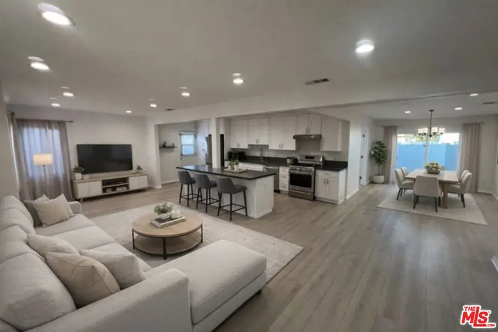 This spacious and light-filled 4-bedroom, 3-bath residence offers refined comfort and modern living in a prime location. Recently remodeled throughout, the home features a beautifully updated kitchen and spa-like bathrooms with contemporary finishes. Designed for both everyday living and entertaining, the property boasts a large, enclosed front concrete patio ideal for hosting gatherings or outdoor dining, along with an expansive living/family/dining room layout. Additional highlights include an in-unit washer and dryer, and generous bedrooms filled with natural light. Conveniently located near Hollywood Burbank Airport, Sun Valley Recreation Center and the Burbank Empire Center, this home blends luxury, space, and accessibility.