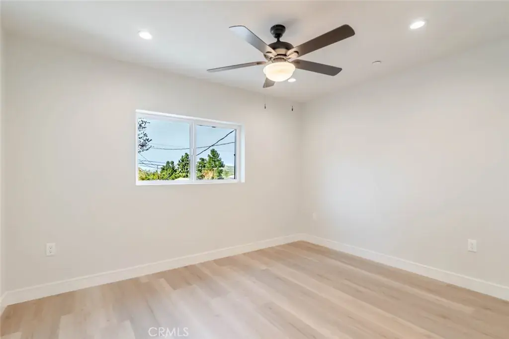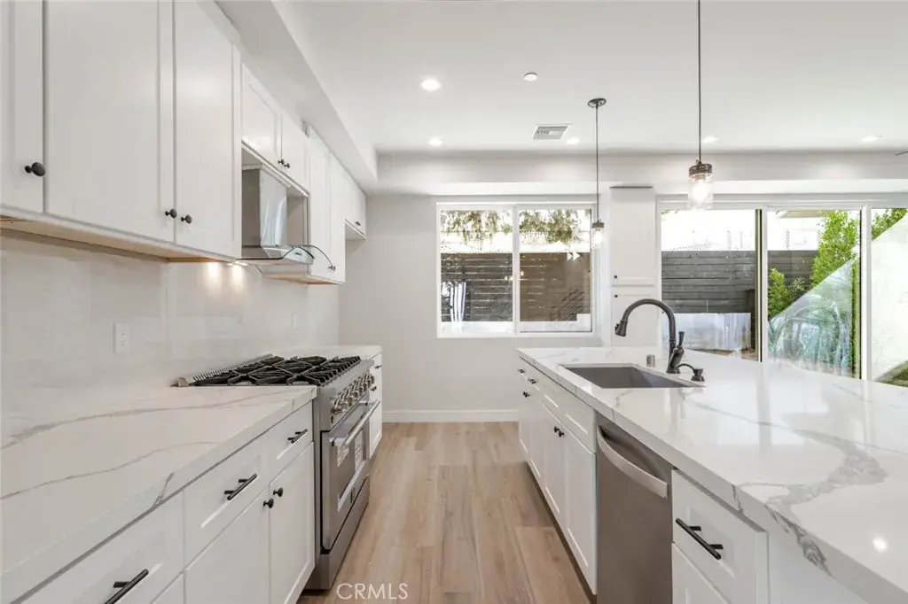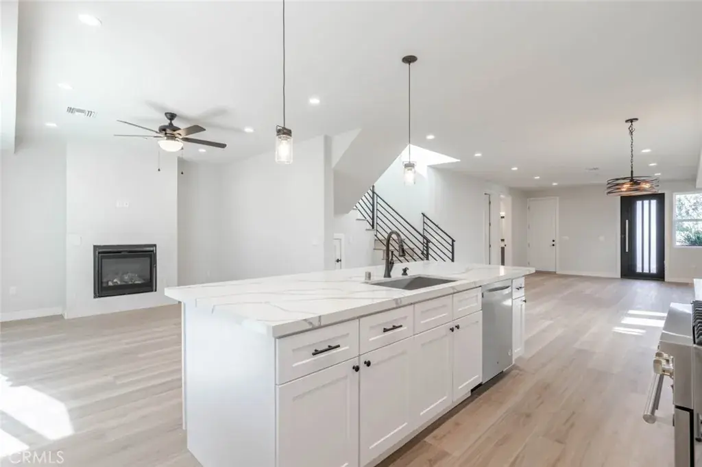 Enjoy an open-concept layout filled with abundant natural light, enhanced by recessed lighting, laminate flooring, ceiling fans, and a cozy fireplace. The modern kitchen is equipped with granite countertops, an island, dishwasher, and stove, perfect for both everyday living and entertaining.
