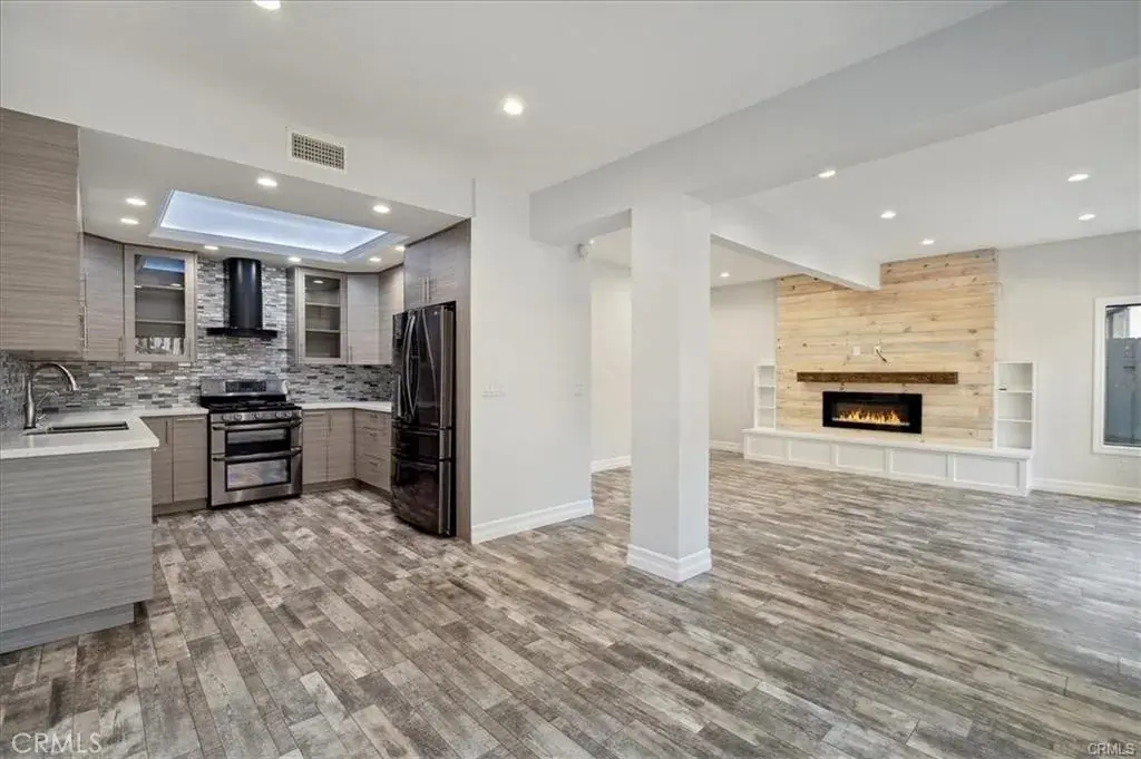 Welcome to the sought-after Sunkist Villas, an extraordinary place to call home. This beautifully remodeled townhouse features 3 bedrooms and 2.5 bathrooms, offering 1,486 sq ft of comfortable living space. Nestled in the desirable Shadow Hills/Sun Valley neighborhood and surrounded by mature trees, this stunning corner unit is situated on a peaceful cul-de-sac. The attached 2-car garage provides ample storage, while the private yard offers a sense of serenity. Inside, beautiful flooring extends throughout the entire home, complementing the light-filled living room with its elegant fireplace and adjacent dining area. The home offers a spacious open-concept layout that blends the kitchen, dining, and living areas beautifully. The kitchen is equipped with modern cabinetry, quartz countertops, a tile backsplash, and stainless steel appliances. Recessed lighting is installed throughout the home, creating a bright and contemporary atmosphere. The inviting living area features a modern fireplace with a wood accent wall and built-in shelving, perfect for relaxing or entertaining. A sliding glass door opens to a spacious patio, ideal for gatherings with family and friends. Each bathroom has been thoughtfully updated, reflecting both style and comfort. The main level includes a convenient powder room, while upstairs you’ll find a hallway bathroom, laundry room, and all three bedrooms with high ceilings. The primary suite offers a generous layout with a large closet, private en suite bathroom, and a balcony that faces open space and trees, creating a peaceful setting with a natural feel. This home also includes an EV charger in the garage, a security camera system, and newer heating, air conditioning, and water heater for added comfort and efficiency. The HOA offers access to a community pool and spa, providing a touch of relaxation and leisure. Ideally located near Burbank, Glendale, downtown Los Angeles, freeways, hiking trails, schools, and shopping. Experience comfort, style, and convenience in this charming Sun Valley home, a true gem and a wonderful place to call home.