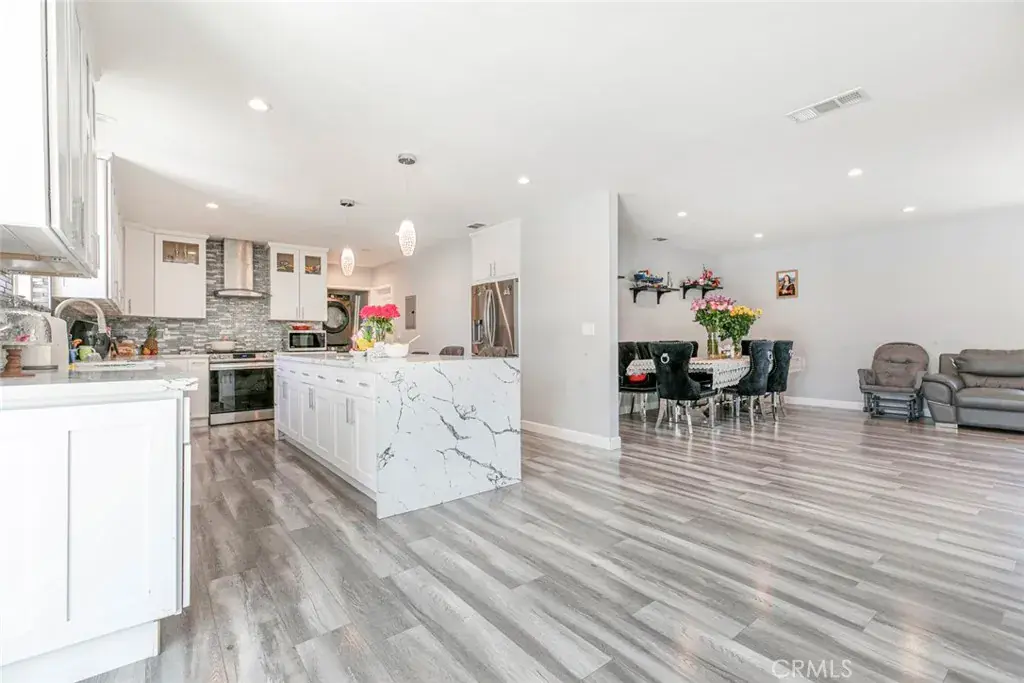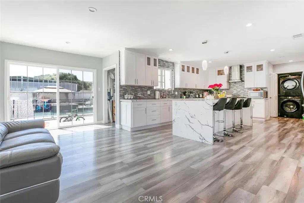 Main House (11024) – 2,053 sq ft | 4 Bed | 3 Bath: Featuring a spacious open layout with laminate flooring, recessed lighting, central AC/Heat, and a beautifully updated kitchen with quartz countertops, a large center island with bar seating, and contemporary finishes throughout.