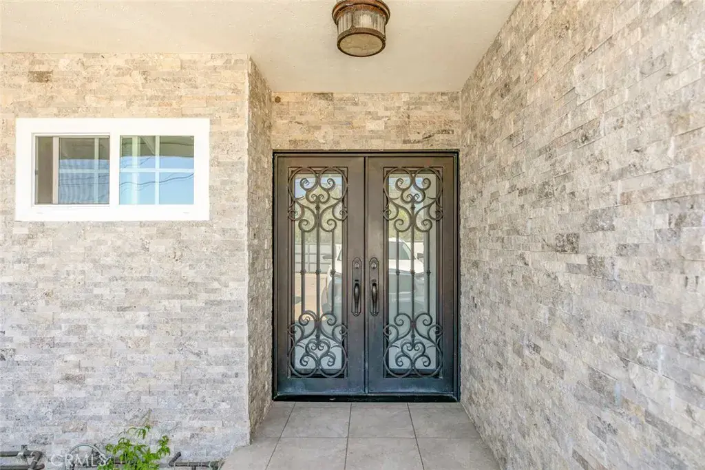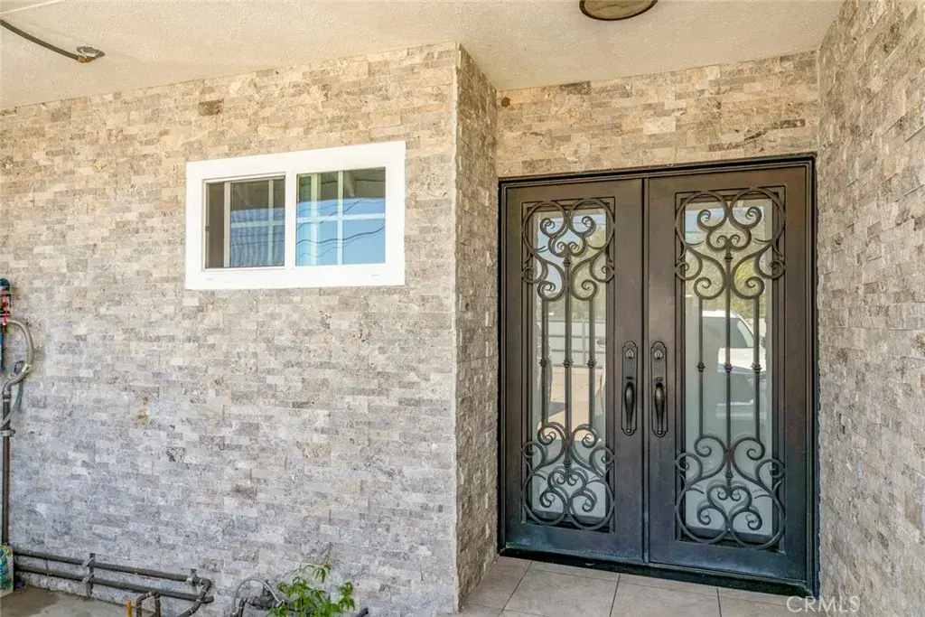 Exterior highlights include dual-pane windows, elegant mosaic stone detailing on the facade, a custom wrought iron entry door, and a solar system for energy efficiency. The expansive driveway offers ample room for RV parking and all your toys.