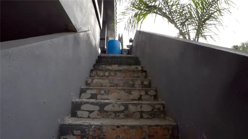 As you walk through the gate and up the gentle slope, you’ll find the very large 1-bedroom ADU, complete with an outdoor sitting area. Inside, it features a full bathroom with a regular tub, a balcony and a spacious bedroom.