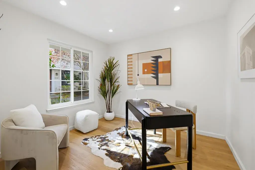 Fully updated with a modern flair, this turnkey home offers exceptional flexibility with two spacious primary suites, a dedicated first-floor office/den, and 2.5 bathrooms, perfectly suited for todays work-from-home lifestyle. New flooring throughout, fresh paint, and contemporary lighting create a polished, move-in-ready interior. The dramatic two-story vaulted ceiling in the living room enhances the bright, open ambiance, while the sun-filled kitchen supports both everyday living and entertaining. Sliding glass doors lead to a private backyard featuring a raised garden bed and generous patio-ideal for al fresco dining and relaxed gatherings. Recent upgrades include new central A/C, double-pane windows, and a new sliding glass door, ensuring comfort and energy efficiency year-round. Ideally located near LinkedIn, high-tech campuses, Caltrain, downtown, farmers markets, parks, and schools, with easy access to Central Expressway and major highways, this home offers the perfect balance of modern living and prime Silicon Valley convenience.