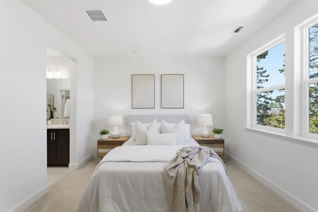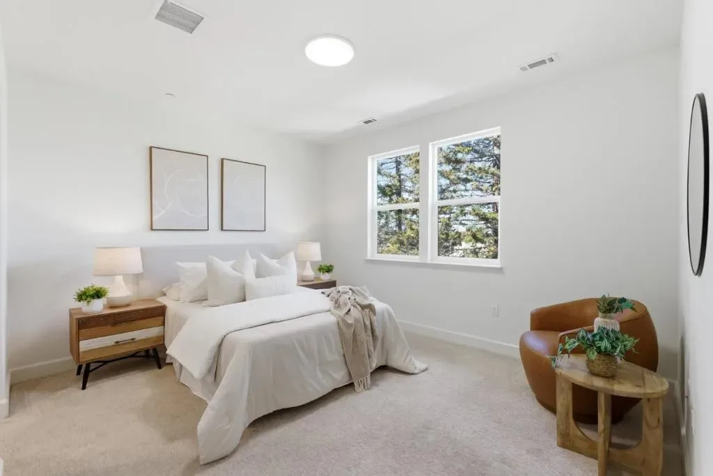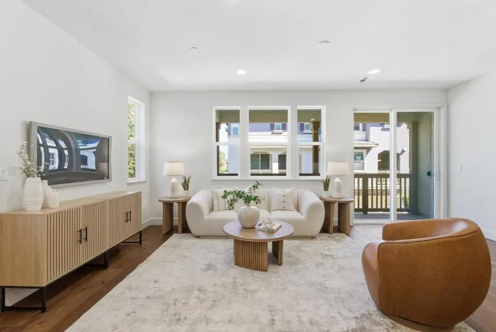 Luxurious Sandalwood Townhome in the heart of Sunnyvale featuring two spacious suites plus a dedicated home office! This desirable corner end unit is filled with natural light thanks to extra windows, creating an open, airy feel. Zoned to top-rated Sunnyvale schools. Enjoy high-end finishes including elegant tile, hardwood flooring, and designer details. The thoughtfully designed great room concept offers an open living, dining, and kitchen areaperfect for everyday living and effortless entertaining. The gourmet kitchen features ample cabinetry, sleek countertops, a center island with seating, pantry, and stainless steel appliances. The oversized owners suite offers a custom walk-in closet, dual vanities, and a spacious walk-in shower. A second junior suite upstairs includes its own en-suite bath. Convenient upstairs laundry with a functional home office. Low HOA amenities include a community clubhouse, playground, dog park, and open greenbelts. Ideally located near major parks, Caltrain, Downtown Sunnyvale, and more, with easy access to Apple, Google, Amazon, and other major employers. Dont miss this exceptional opportunity!