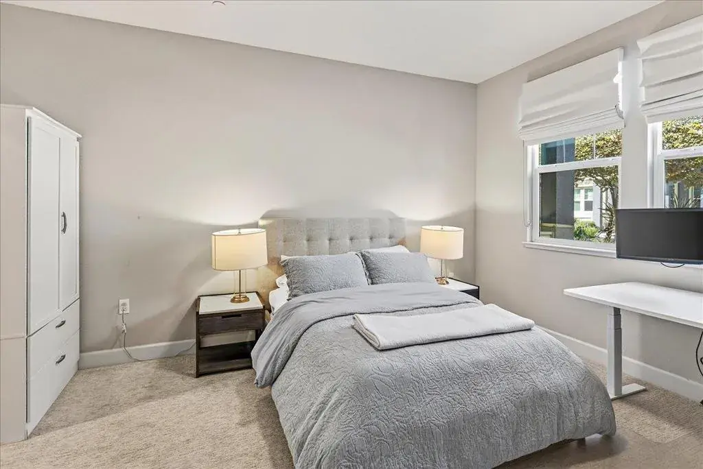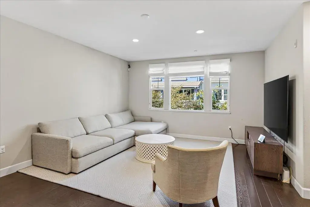 Rarely available, largest plan in the Sandalwood community. This beautiful townhome is designed with comfort and elegance. Heart of the home is the expansive Great Room, featuring a spacious kitchen centrally positioned between a formal dining area and a generous living space. Dining area seamlessly connects to a covered balcony, ideal for enjoying outdoor meals or relaxing. Modern kitchen is a true social hub, equipped with a large island that provides versatility for casual dining and effortless entertaining. Premium finishes include granite countertops, mosaic tile backsplash, sleek stainless-steel appliances and ample cabinetry for all your storage needs. Upstairs, the primary suite offers a luxurious sanctuary with a spacious shower, dual-sink vanity, private water closet, and an expansive walk-in closet complete with organizers to maximize space and functionality. The ground-level suite provides flexibility and convenience, making it perfect for a home office or guest accommodation. Premium features include tile floors in all bathrooms, zoned HVAC for personalized climate control, upper-level laundry, custom window treatments. Community amenities include playground and clubhouse. Unbeatable location just moments from Downtown Sunnyvale, Caltrain, and major tech hubs.