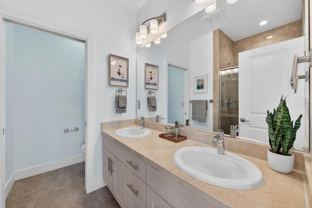 This single family attached home is minutes from Apple campus and El Caminos shopping, restaurants and downtown Sunnyvale. The house offers 3 bedrooms (two ensuite) and 3.5 baths in a smart open floor plan of 1,800 SQ FT, perfect for effortless living and entertaining. Maple hardwood floors throughout the first floor. High ceilings, dual-zone HVAC, tankless on-demand water heater, security system, built in sound system, 240 V outlet for EVs. Kitchen is equipped with an island, Kitchen Aid stainless steel appliances, granite countertops, beautiful back splash tiles, and elegant soft-close frameless cabinetry. Large master bedroom with walk-in closet and large bathroom with bath tub, stall shower, marble vanity countertops, and high-end Hansgrohe faucets. Meticulously built with no detail overlooked; crafted with quality and care. Dont miss out on this wonderful opportunity in Sunnyvale!