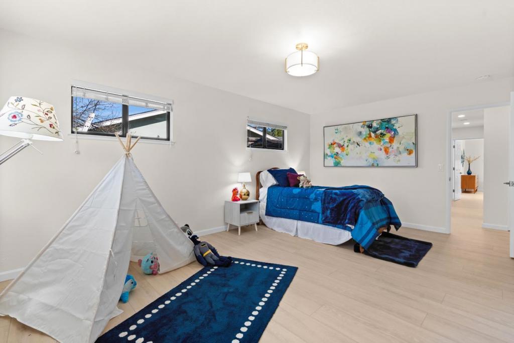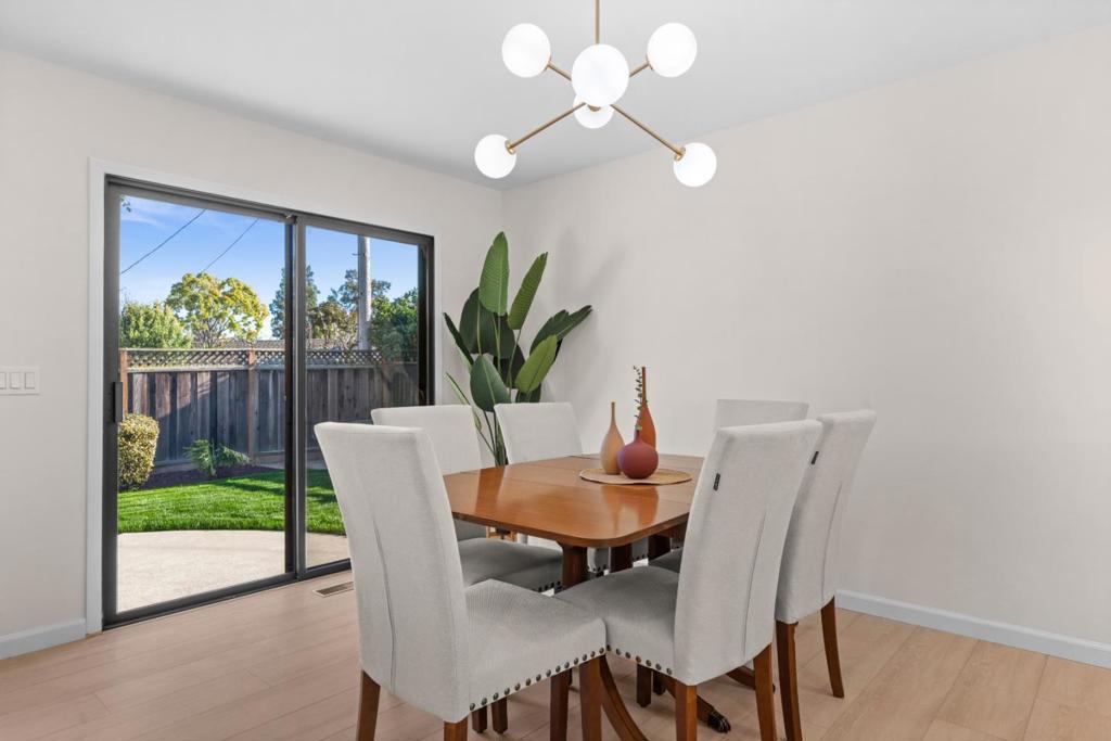 Located In the desirable neighborhood of Wrightmont corners, this Beautifully remodeled and updated home is ready for a new family. Walk into the light and bright living room with large picture windows with a view of the backyard. The living room has its original 1957 mural on one wall, a wonderful electric fireplace, a mounted TV and is open to a spacious dining area. The kitchen is newly remodeled with quartz counter tops new sink, faucet and appliances. A coffee station and large pantry cabinet add lots of storage. The home was previously added onto in the 70’s, enlarging the bedrooms. A recent alteration in the primary bedroom created a 4 bedroom/office. The indoor laundry room has a sink and plenty of cabinets for lots of storage. The primary bedroom features an ensuite bath, sliding door access to the backyard and a walk-in closet with organizer. There is new paint, baseboards and luxury Vinyl throughout. The spacious backyard has a large patio, new sprinkler system & lawn, children’s play area right outside the kitchen window. The expansive front yard can be fenced to create even more personal space to expand into. Located a short distance to Downtown Sunnyvale, El Camino Real shops & restaurants, Extremely Desirable schools.