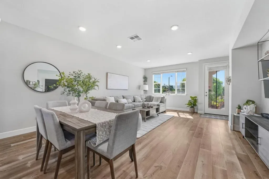 Built in 2020, this well-maintained PUD townhome blends contemporary design with modern comfort in the heart of Silicon Valley. Featuring 4 beds, 3.5 baths, 1,749 sqft of thoughtfully designed living spaces, the home includes double primary suites, spacious open layouts, and high-end finishes throughout, along with a private balcony, in-unit laundry room, a side-by-side two-car garage, and plenty of guest parking spaces. The ground level features a private bedroom suite with a full bath and a generous closet, ideal for guests, rental income, or multigenerational living. On the second level, enjoy a bright open-concept living and dining area with a chef’s kitchen. The kitchen is equipped with Mahogany shaker cabinets, Silestone quartz countertops, a full mosaic backsplash, and premium stainless steel appliances, including an induction cooktop, hood, microwave, wall oven, and dishwasher. The third level offers a second primary suite along with two additional bedrooms and a full bath, providing flexibility for families, guests, or work-from-home needs. A dual-zone heating and cooling system provides year-round comfort. HOA covers garbage. Easy access to VTA, Hwy 101, 237, and 85. Just minutes from Google, Meta, Nvidia, and other major tech companies.