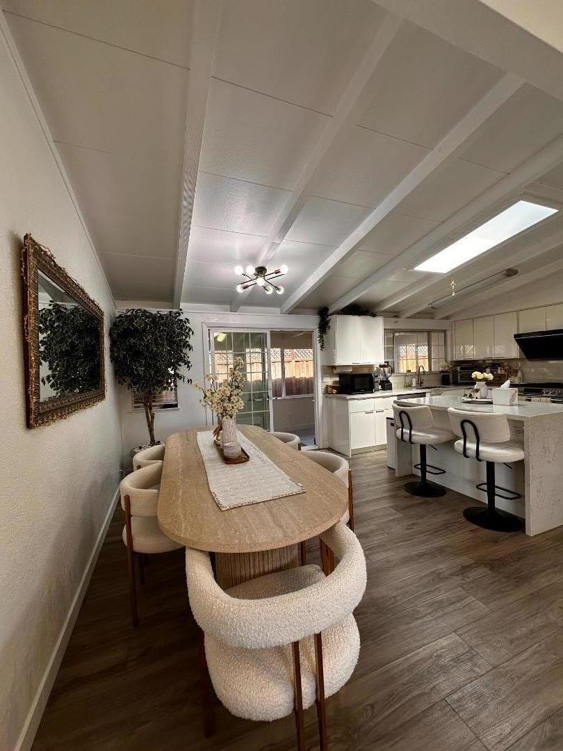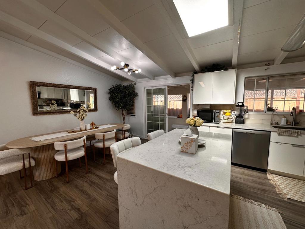 Beautifully maintained and move-in ready, this expansive Sunnyvale residence spans over 2,200 square feet and offers a thoughtfully designed layout tailored for modern living. The home features multiple living spaces, including a light-filled living room and a separate family room with sliding glass doors that open to the backyardideal for both relaxing and entertaining. Skylights brighten both the living area and kitchen, filling the home with abundant natural light and creating a warm, inviting atmosphere. . A charming storage shed provides additional space for tools and outdoor essentials, complemented by a smart irrigation system for easy maintenance. This home has been extensively upgraded, including a newer roof (approximately 1.5 years old), a 200-amp electrical panel, and durable vinyl flooring throughout. Enjoy year-round comfort with a dual-zone ducted heat pump system installed just over two years ago, as well as the efficiency of a tankless water heater. The newly remodeled kitchen features sleek European-style cabinetry, a reconfigured layout for improved flow, and elegant quartz countertops, including a striking waterfall island. Ideally situated near the Mercado shopping center, residents can enjoy easy access to dining, cafes and a movie theater.