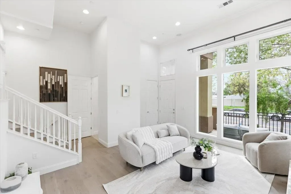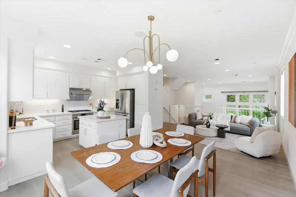 Beautiful end-unit townhome by Toll Brothers, perfectly positioned in the heart of Silicon Valley near major tech campuses. This bright and stylish Sunnyvale residence offers approximately 1,650 sq ft of thoughtfully designed living space with 3 bedrooms and 2.5 baths. Step into a light-filled living area highlighted by dramatic 13-foot ceilings and elegant front-facing windows, creating an inviting and airy ambiance. The open-concept family and dining area flows seamlessly into a beautifully upgraded chefs kitchen featuring stainless steel appliances, a Fotile range hood, gas range, and a generous island with sleek quartz countertopsperfect for entertaining and everyday living. Upstairs, unwind in spacious bedrooms, including a serene primary suite with vaulted ceilings and a spa-inspired bath complete with dual sinks, soaking tub, and separate shower. Convenient in-home laundry enhances comfort and ease. Enjoy the vibrant lifestyle with a short stroll to Seven Seas Park, and quick access to Sunnyvale Baylands Park, Levi’s Stadium, and Shoreline Amphitheatre. With easy access to Highways 237, 101, and 85 and proximity to Apple, Google, Microsoft, Amazon, Meta, and LinkedIn, this is a home you wont want to miss.
