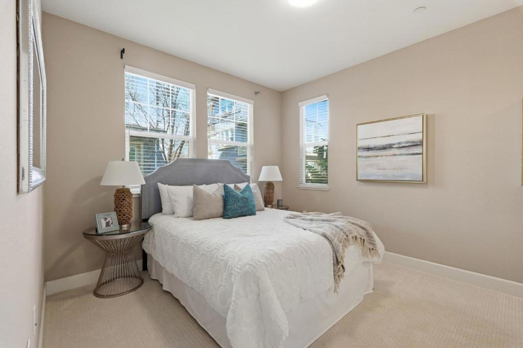 Welcome to this stunning former model home with quality construction and designer upgrades across the home. Unlike traditional narrow townhomes, this 3 bed, 3.5 bath residence features a corner unit with a wide-profile square footprint, allowing natural light to flood deep into the heart of the home. The open-concept features custom tile floors with a designer kitchen equipped with granite countertops, custom cabinets, modern stainless steel appliances, light fixtures and upgraded window treatments. The luxurious primary suite offers a walk-in closet and a spa-inspired bathroom with double sinks and a spacious shower. Designed for flexibility and comfort, the home features a ground-floor bedroom suite with attached bathroom for guests, parents or rental income. Additional highlights include central air conditioning, forced air heating, and an attached 2-car garage for secure parking and extra storage. Nestled within a vibrant community, residents enjoy private access to a dedicated children’s play area, a spacious dog park and a large community hall perfectly catering to every member of the family. Ideally located within the heart of Silicon Valley and close to major tech campuses. Big-tech commuter bus stop is right in front of the community.