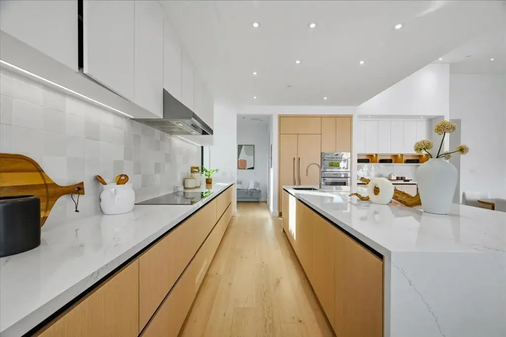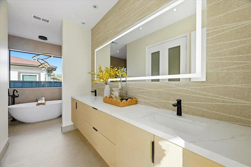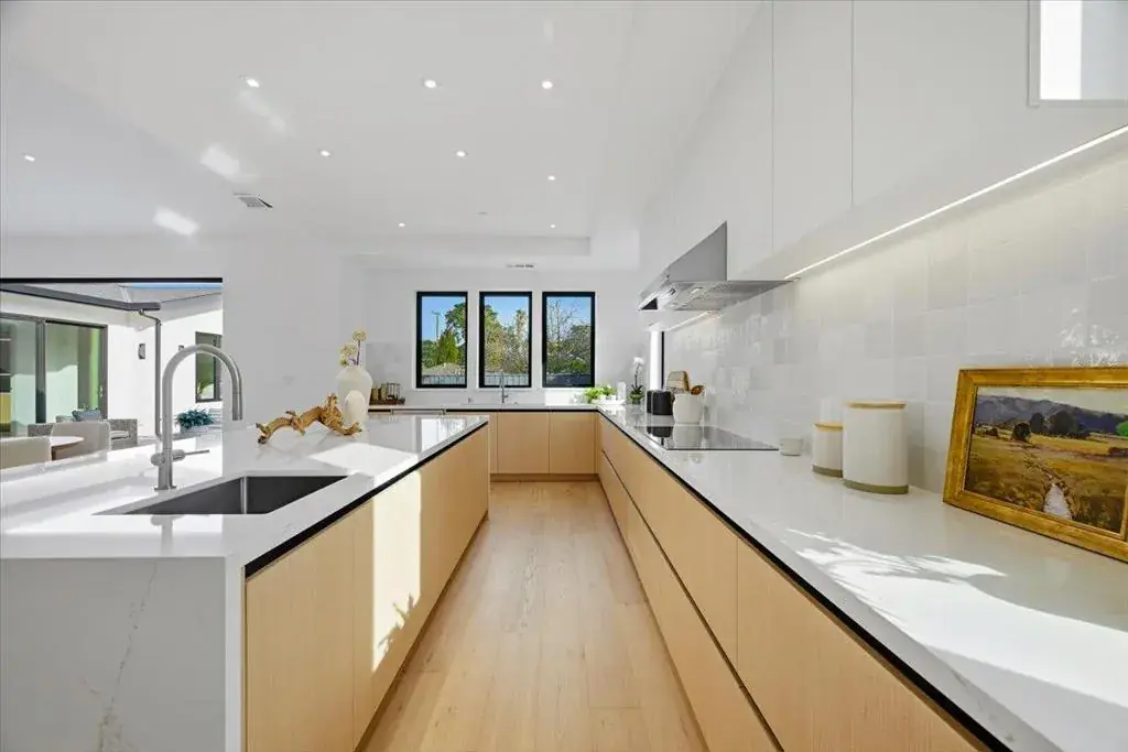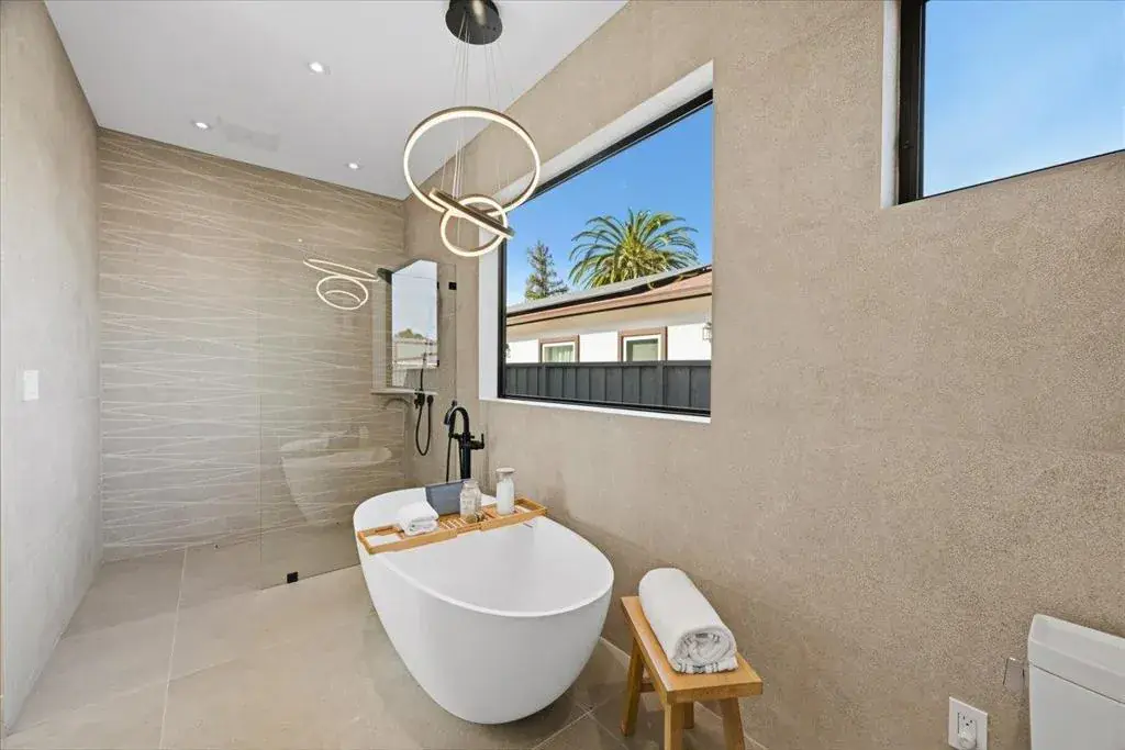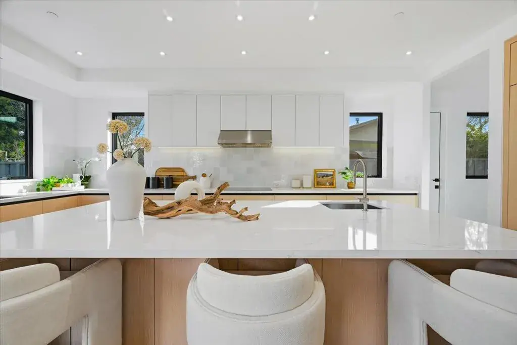 Striking modern custom home in one of Sunnyvales most desirable neighborhoods. This fully permitted custom home offers 5 bedrooms, 4.5 bathrooms, and 3,167 sq ft on a nearly 10,000 sq ft lot, rebuilt entirely with new foundation, roof, systems, and finishes throughout, including an owned solar panel system designed to power the entire property. Highlights include a bright open layout with vaulted ceilings and skylights, a La Cantina folding door for seamless indoor-outdoor living, and a chef’s kitchen featuring high-end Thermador appliances, European cabinetry, and a built-in refrigerator and a wine cooler. Premium features continue with white oak engineered flooring, Porcelanosa designer tilework, Marvin windows, and a spa-like primary suite with backyard access, plus three private guest suites. The front and backyard are thoughtfully landscaped in a garden-style setting, ideal for both relaxation and entertaining, complemented by a high-efficiency Bryant heat pump system. An exceptional opportunity combining modern design, generous lot size, and a prime Sunnyvale location.