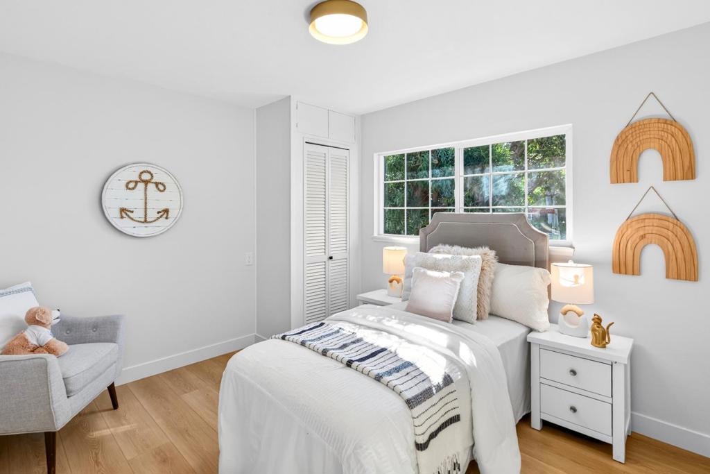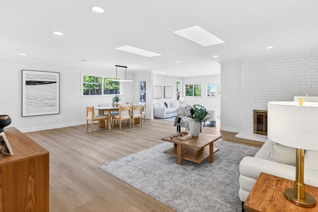 Newly remodeled and tucked away on a calm cul-de-sac in a highly sought-after neighborhood near the Cupertino and Los Altos borders, this exceptional home blends modern comfort with an unbeatable location. Just steps from Top-Rated Cupertino schools, the renowned Serra Park and Homestead Crossing shopping center. Inside, new luxury vinyl plank flooring runs throughout a bright, freshly painted and thoughtfully designed floor plan, with vast natural light pouring in through dual-pane windows and skylights. Recessed lighting and a cozy wood fireplace create a warm, refined living space. The dining area flows seamlessly into a sleek, updated kitchen featuring stainless steel appliances, quartz countertops and ample cabinetry. All bedrooms are comfortably-sized with their own closets, while the primary suite offers a large walk-in closet and en-suite bathroom. Additional highlights include a two-car garage with washer/dryer and sink, upgraded electrical main panel (200A), along with a step down family room that opens to a newly landscaped backyard with lush greenery. Ideally located near Silicon Valleys leading tech campuses including LinkedIn, Apple, and Meta, with easy access to Highways 85, 280, and Caltrain. Do not miss your chance to own this golden gem. It will go FAST!