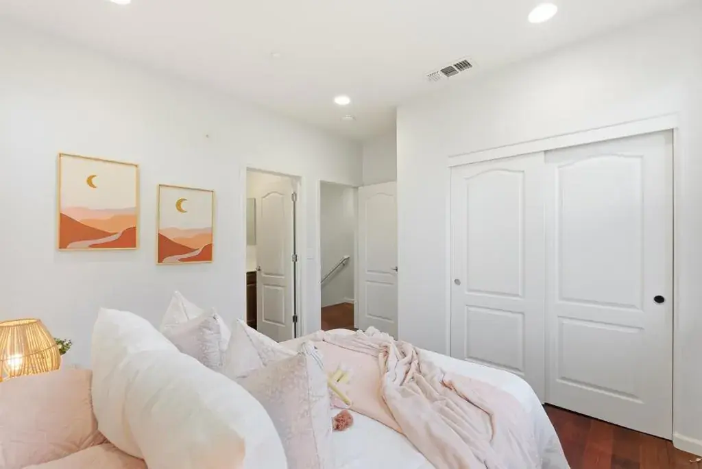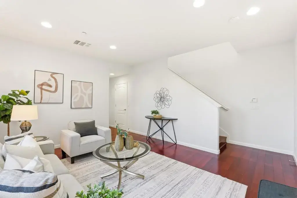 Welcome to Evelyn Glen, located in the heart of Sunnyvale surrounded by soaring Redwoods minutes from Downtown Sunnyvale and both new Apple campuses & CalTrain! Luxurious End Unit Townhome featuring extra windows on all levels that let in loads of natural light and a bedroom on the main level w/ a WIC and access to a full bath. Vibrant hardwood floors, high ceilings w/ recessed lighting, tall double pane windows, elegant tile features & more! Ground Floor features a bonus Family Room & Full Bath w/ floor to ceiling elegant tiles. Open Great Room concept with Living Room, Dining Room and Kitchen combo. Luxurious Kitchen complete w/breakfast bar, stainless steel appliances, large pantry & granite counters. Spacious Owners Suite w/ WIC & en-suite bath w/ dual sinks. Jr Suite also located on upper level w/extra windows, en-suite bath & large closet. Laundry is conveniently located on the upper level. Private patio, great for BBQ’s. Lower HOA w/Clubhouse, playground, open field and more! Minutes from newly built Downtown Sunnyvale w/ loads of restaurants, Whole Foods, AMC, Target and more! Short drive to CalTrain, El Camino Real, Central Expressway, Lawrence Expressway, and 101. Easy access to the major companies such as both Apple Campuses, Nvidia, Amazon and Google. Don’t miss out!