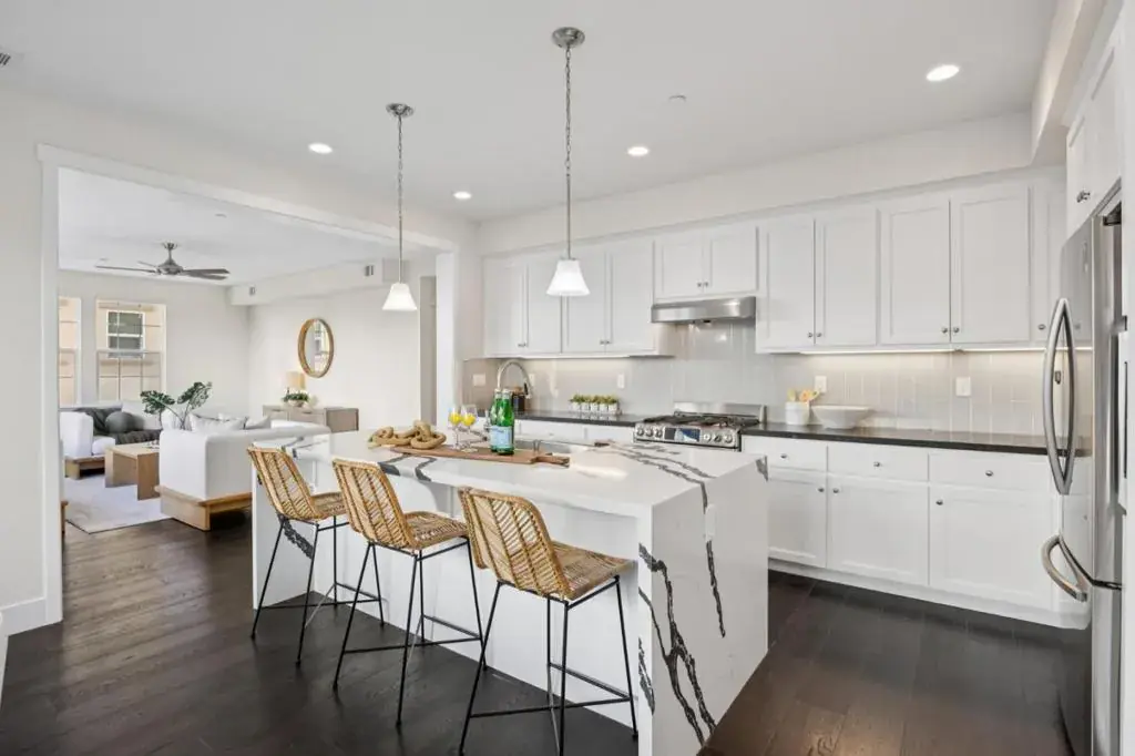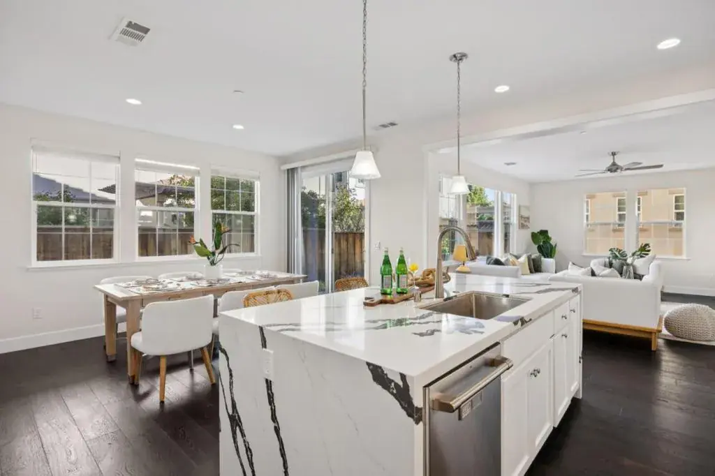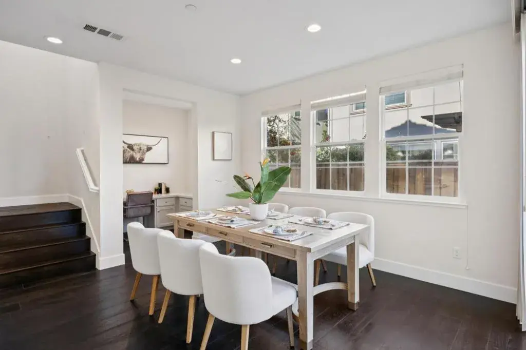Experience refined modern living in this 9-year-new luxury single-family residence, enhanced with thoughtful designer touches throughout, and perfectly positioned in one of Sunnyvale’s most sought-after neighborhoods. The thoughtfully designed floor plan features a guest bedroom and full bathroom and an office on the main level, while four spacious bedrooms upstairs provide flexibility for family living. At the heart of the home, the chefs kitchen stuns with a brand-new waterfall island countertop, sleek cabinetry, and high-end stainless steel appliances, creating a space that is as beautiful as it is functional. The spa-inspired primary suite is a private retreat, featuring a brand-new dual-sink vanity, and a luxurious walk-in rainforest shower, offering a serene, resort-like experience at home. Just a short walk to Sunnyvale downtown, this residence places you moments from Target, Whole Foods, Murphy Street dining, theaters, major freeways, leading tech campuses, and schools, delivering the ultimate Silicon Valley lifestyle with style and sophistication. This is a rare opportunity to own a home where luxury, location, and designer details come together effortlessly. Welcome home!