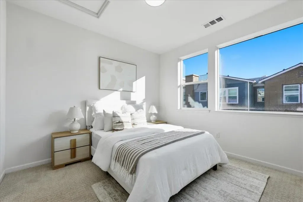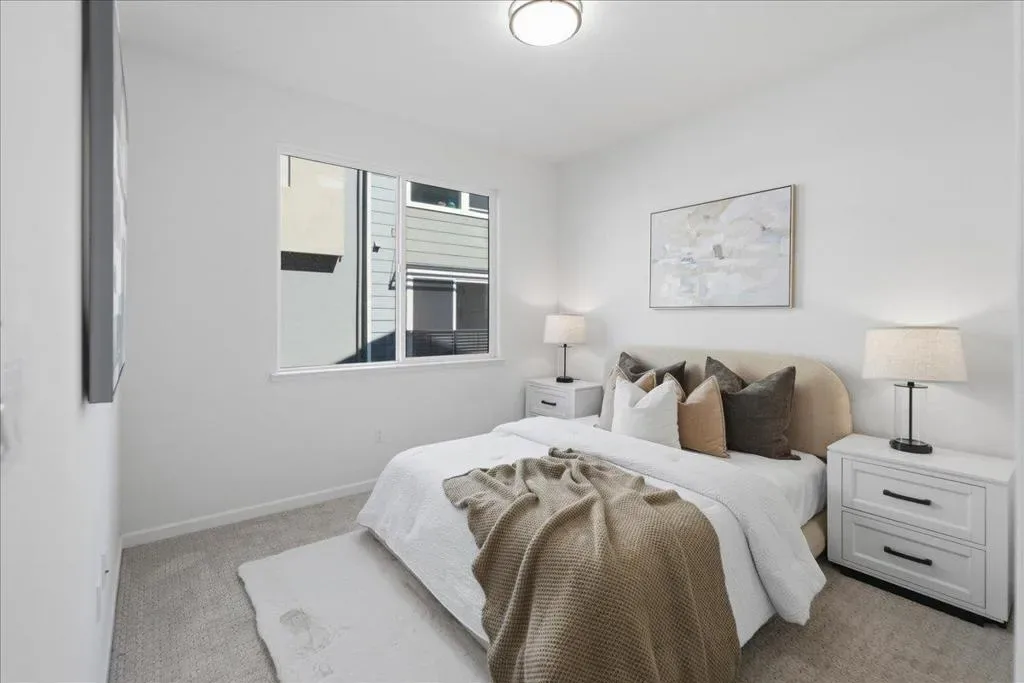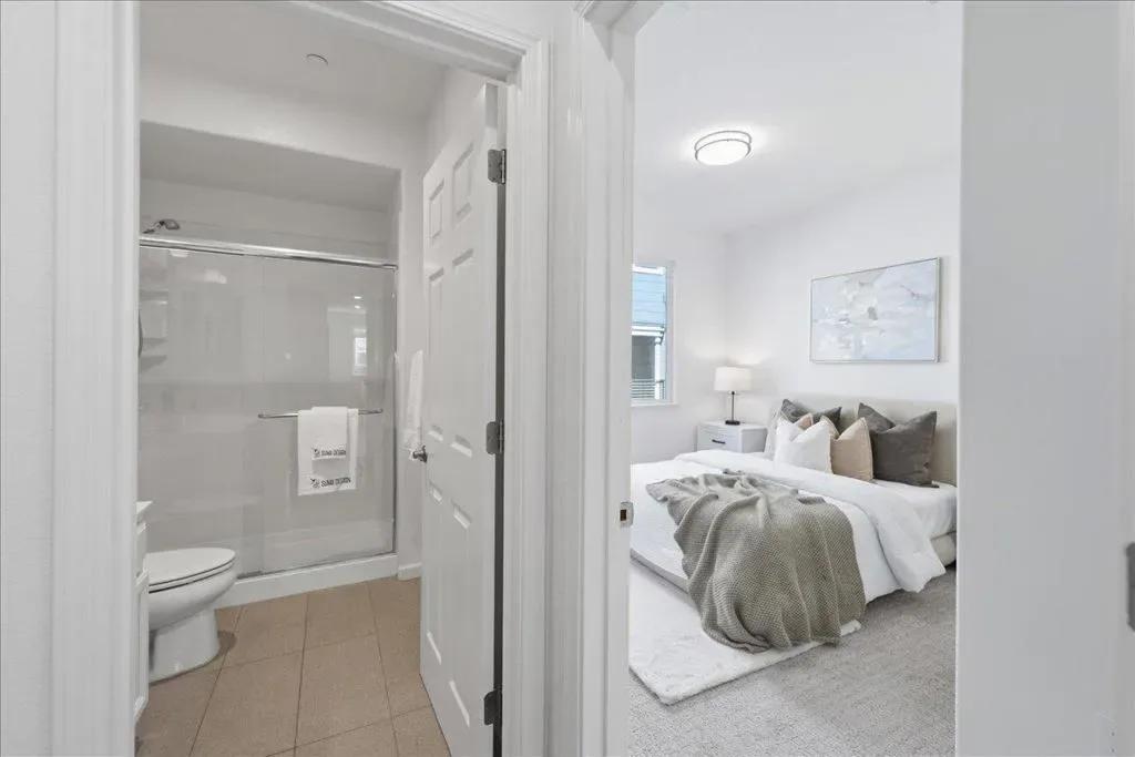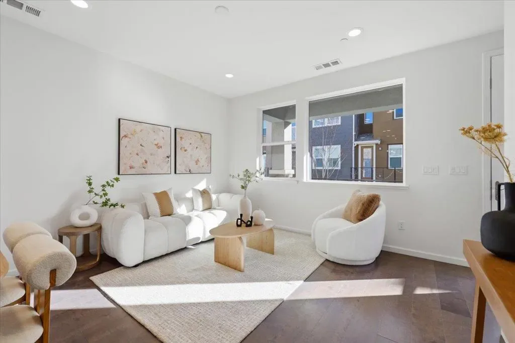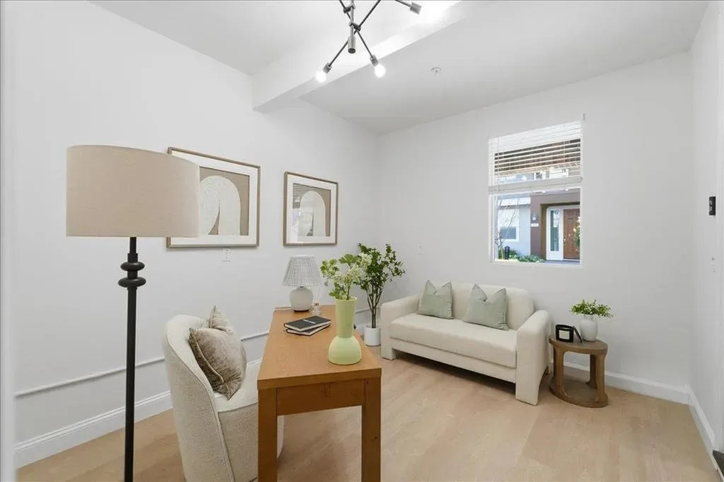 This contemporary 3B/3B + Bonus Office townhouse in the heart of Silicon Valley, built in 2017, features a thoughtfully designed multi-level layout with a ground-level bonus office adding valuable flexible space (~150 sqft) ideal for working from home, a gym, or creative studio. The south-facing main living level features hardwood floors and opens to a private covered balcony, a rare community feature offering added privacy and year-round outdoor enjoyment. The versatile layout includes one bedroom and full bathroom on the main level, ideal for guests or multi-generational living. Upstairs are two spacious en-suite bedrooms, including a primary suite with walk-in closet and dual-sink vanity. Additional highlights include an attached side-by-side two-car garage with a 240V EV charging outlet. Located in a NO SUPERFUND area, the home offers exceptional Silicon Valley convenience. ~3-minute walk to nearby Google and Meta shuttle stops, and within walking distance to Apple Campus, Applied Materials, and Fair Oaks Park. Minutes to Downtown Sunnyvale, Whole Foods, Costco, and Caltrain, with easy access to Highway 101 and Central Expressway. Nearby tech employers include Google, Amazon, LinkedIn, Nvidia, and Meta. HOA includes water and garbage services.