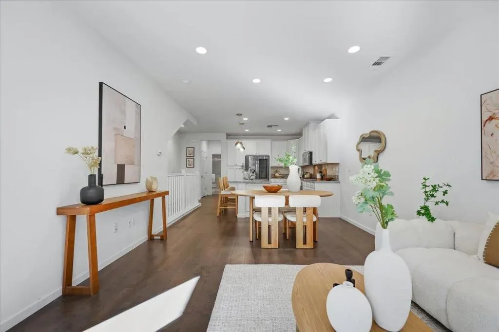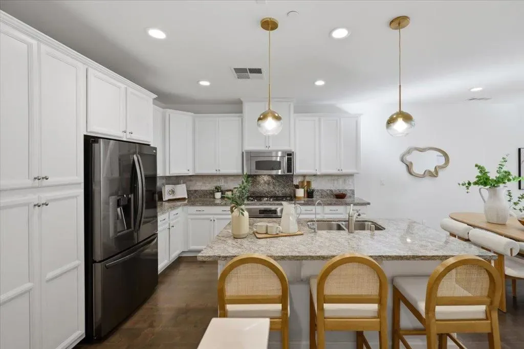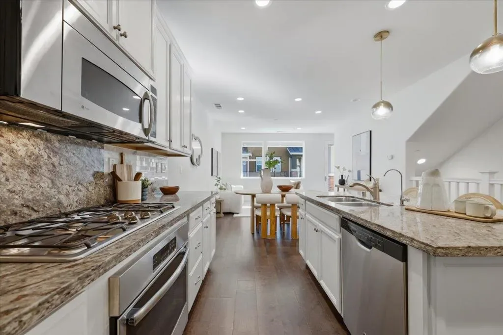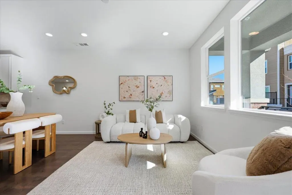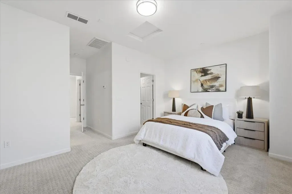 This contemporary 3B/3B + Bonus Office townhouse in the heart of Silicon Valley, built in 2017, features a thoughtfully designed multi-level layout with a ground-level bonus office adding valuable flexible space (~150 sqft) ideal for working from home, a gym, or creative studio. The south-facing main living level features hardwood floors and opens to a private covered balcony, a rare community feature offering added privacy and year-round outdoor enjoyment. The versatile layout includes one bedroom and full bathroom on the main level, ideal for guests or multi-generational living. Upstairs are two spacious en-suite bedrooms, including a primary suite with walk-in closet and dual-sink vanity. Additional highlights include an attached side-by-side two-car garage with a 240V EV charging outlet. Located in a NO SUPERFUND area, the home offers exceptional Silicon Valley convenience. ~3-minute walk to nearby Google and Meta shuttle stops, and within walking distance to Apple Campus, Applied Materials, and Fair Oaks Park. Minutes to Downtown Sunnyvale, Whole Foods, Costco, and Caltrain, with easy access to Highway 101 and Central Expressway. Nearby tech employers include Google, Amazon, LinkedIn, Nvidia, and Meta. HOA includes water and garbage services.