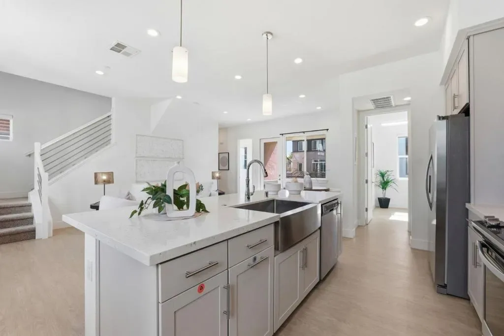 Built in 2022, this desirable corner-unit home with a private yard offers a rare blend of modern comfort, energy efficiency, and prime Silicon Valley convenience. This beautifully designed residence features soaring ceilings, abundant natural light, and an open-concept floor plan ideal for both everyday living and entertaining. A standout feature is the exceptionally spacious primary suite, offering a true retreat with ample room to relax and unwind. Thoughtfully constructed with premium sound insulation for enhanced privacy, the home delivers a peaceful and refined living experience. Solar power helps keep electricity costs low, while HOA dues include water, trash, pest control, and annual window cleaning for added ease and value. Enjoy inviting outdoor spaces including a welcoming front patio and a versatile private yard, all just a short walk to Seven Seas Park. Ideally located with effortless access to Highways 101, 85, and 237, and just minutes from major tech campuses such as Google, Meta, and NVIDIA, this home offers luxury, convenience, and lifestyle in one exceptional package.