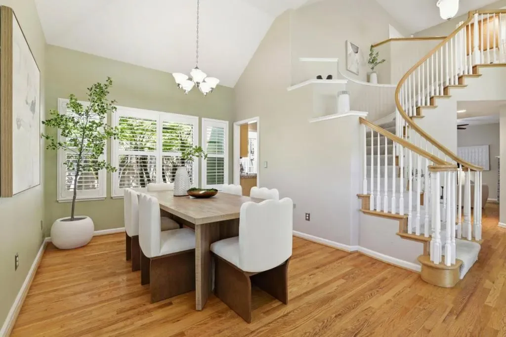 Thoughtfully curated upgrades and a lifestyle that makes sense. A paver driveway and welcoming pathway lead into a home designed for everyday living and effortless entertaining. A well-balanced layout features a living room on one side, dining on the other, with a grand staircase at the center allowing the floor plan wrap seamlessly around the home. The kitchen, breakfast nook, and family room come together beautifully, anchored by a gas fireplace that creates separation while maintaining an open connected feel. Extend your living outdoors with a spacious backyard with an orange and lemon tree, or retreat to the finished garage with added storage. The side yard offers a covered patio, perfect for storage, a private lounge, dog run or catio setup. Upstairs, the primary suite is a true retreat complete a well-appointed bath and walk-in closet. Laundry upstairs adds to the homes thoughtful functionality. Location is everything, steps from Las Palmas Park with a library, fitness center, community amenities, plus shopping and dining along Mathilda Ave. Walkable and bikeable, yet tucked into an established Sunnyvale neighborhood. Also near major Silicon Valley tech with access to highly regarded schools Cumberland Elementary, Sunnyvale Middle, and Fremont High (buyer to verify).