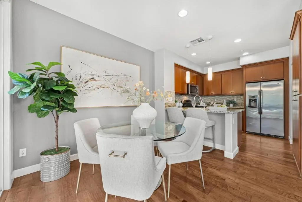Stunning 2b2.5b corner unit townhome in the heart of Sunnyvale! It comes with a gorgeous open layout, lots of windows and abundant natural light. The spacious living and dining areas seamlessly connect to the gourmet kitchen, featuring s/s appliances and a breakfast bar. Step out to the private balcony for fresh air or morning coffee. The main level also includes a convenient powder room and laundry area. Two en-suites on top floors provide comfort and privacy. Bright and spacious master suite features double-sink vanity and a walk-in closet. Central heating & AC. The community offers resort-style amenities such as movie theater, clubhouse, gym, mini golf, playground, BBQ area, and putting green. HOA fee covers water and trash! Short walk to Muwékma Park, Swegles Park and Wiser Park. Close to Google, Amazon, Microsoft, Apple, Nvidia and other major companies. Close to groceries, AMC theater, restaurants, shopping plazas, gyms, and downtown. Easy access to 101, 237, Central Expy, Lawrence Expy and public transportations. Don’t miss out on the opportunity to call this home!
