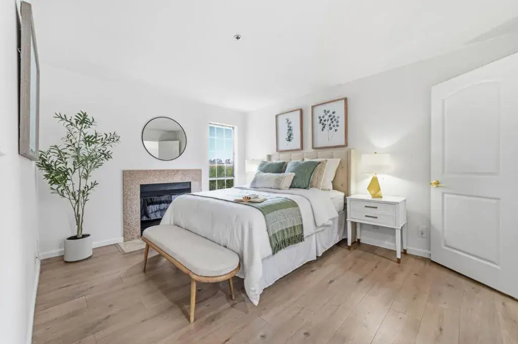Welcome to this Sunnyvale townhouse in a very convenient location. The home offers a front yard ideal for outdoor activities. Upon entry is an inviting living room with a cozy fireplace and recessed lighting throughout. The dining area connects to the gourmet kitchen, featuring stylish quartz countertops and backsplash, a breakfast bar, stainless steel appliances, and ample cabinetry. Near the living room are a powder room and an in-unit laundry with washer and dryer. Up on the second level are two suites. The primary suite includes a fireplace, walk-in closet, and a bathroom with a shower and oversized tub. There is also an extra-large storage area in the attic space. The second suite is spacious with large closets and a bathroom featuring a shower over tub. Located in a community near El Camino Real, with restaurants, parks, shopping, and grocery stores within walking distance. Short commute to tech companies, with easy access to Hwy 85 and Lawrence Expressway. Don’t miss this great opportunity!